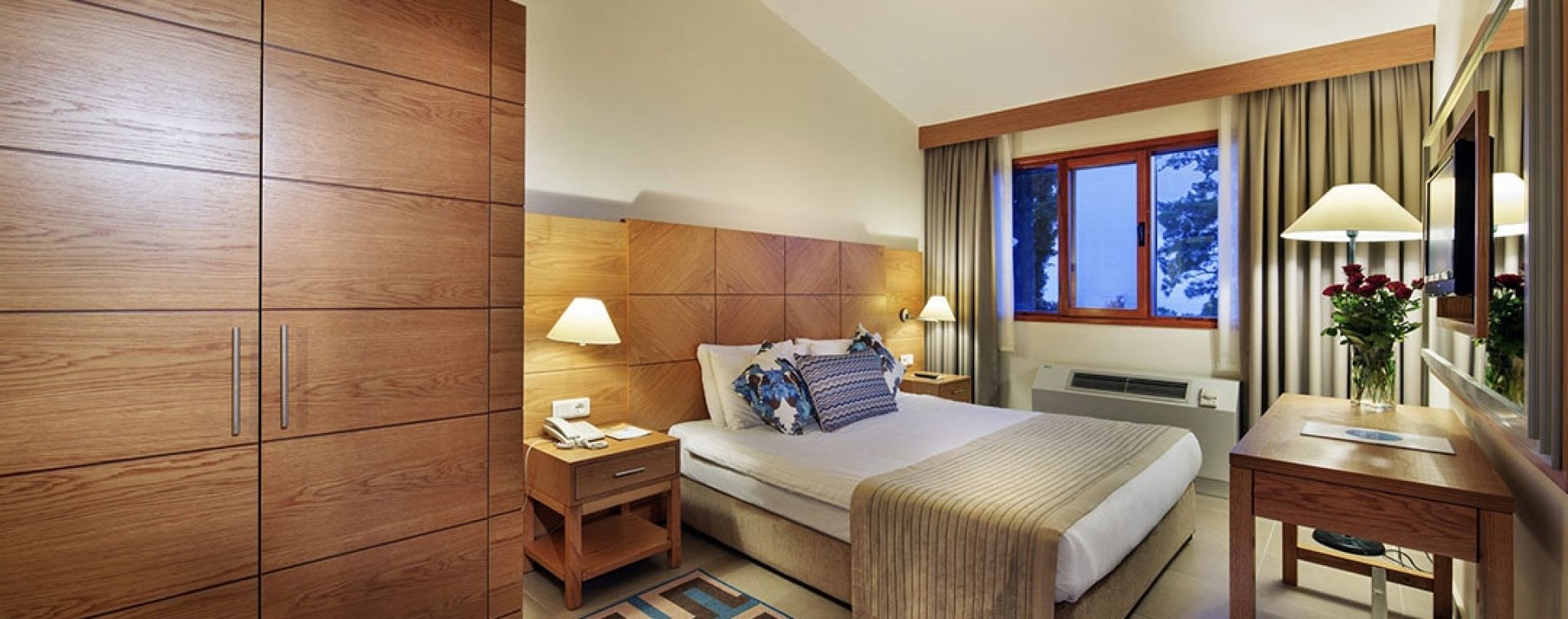 Хотелска част (девететажна сграда) с общо 320 стаи, от които: стандартни стаи с изглед градина (25 м²), с частичен изглед море (30 м²) и с изглед море (25 м²), супериор стаи с изглед море (40 м²), джуниър стаи с изглед градина (1 спалня - 31 м²), фамилни стаи с изглед градина (2 спални, 1 баня - 43 м²), стандарт суит (1 спалня, всекидневна, 1 баня - 50 м²), супериор суит (2 спални, всекидневна с кухненски бокс, 3 бани -119 м²), бизнес суит (1 спалня, всекидневна - 166 м²), стандарт суит с тераса (1 спалня, 1 баня, тераса с джакузи - 40 м²), стандарт суит с градина и тераса (1 спалня, всекидневна, 2 бани, градина с джакузи - 54 м²), супериор суит с басейн (2 спални, всекидневна, 2 бани, тераса с джакузи и басейн - 147 м²),