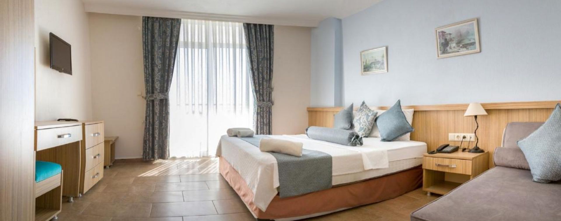 Хотелът разполага с общо 50 стаи, от които 43 стандартни (с изглед море или изглед към басейн, 23 m² - 30 m²), 4 фамилни стаи (свързани стаи), 2 дуплекс фамилни стаи (без свързваща врата), 1 инвалидна стая. Всички стаи са оборудвани с климатик, телевизор, телефон, баня с душ, сешоар, сет за чай/кафе, минибар, балкон. Почистване на стаите - всеки ден, смяна на спалното бельо и кърпите - 2 пъти в седмицата.