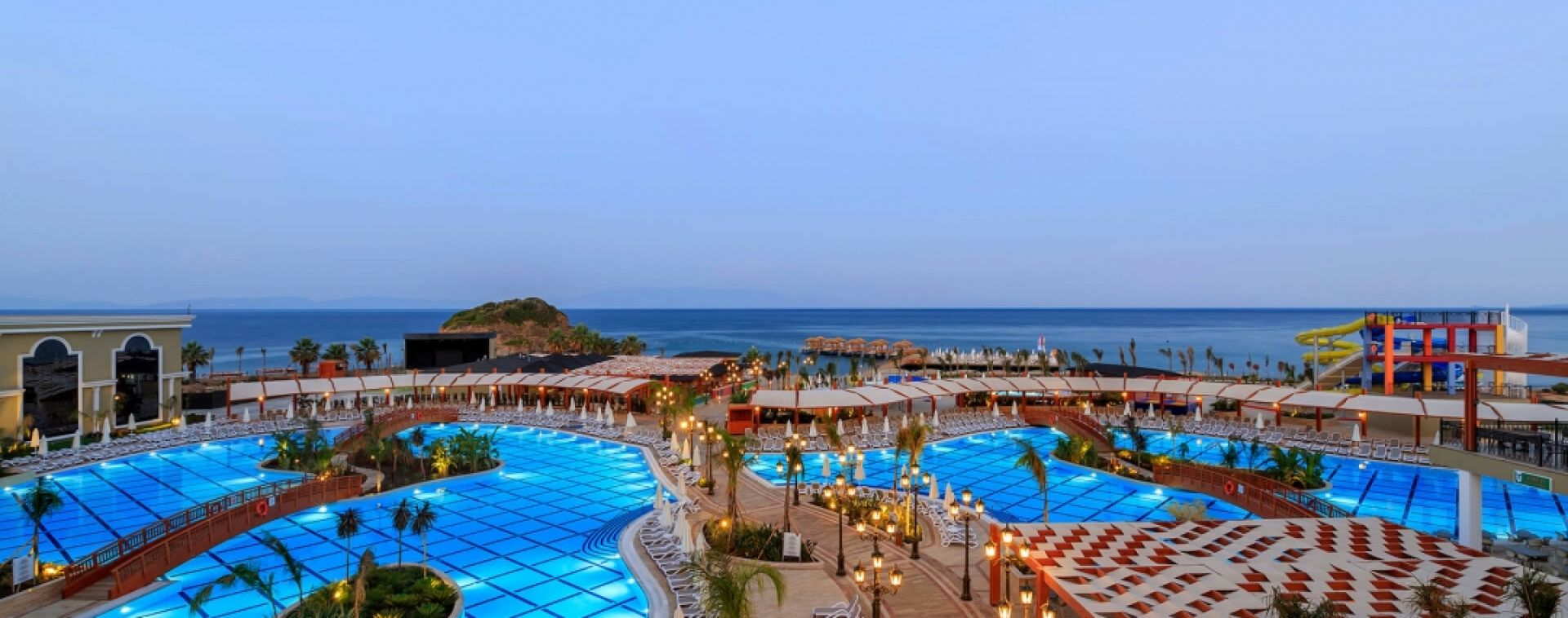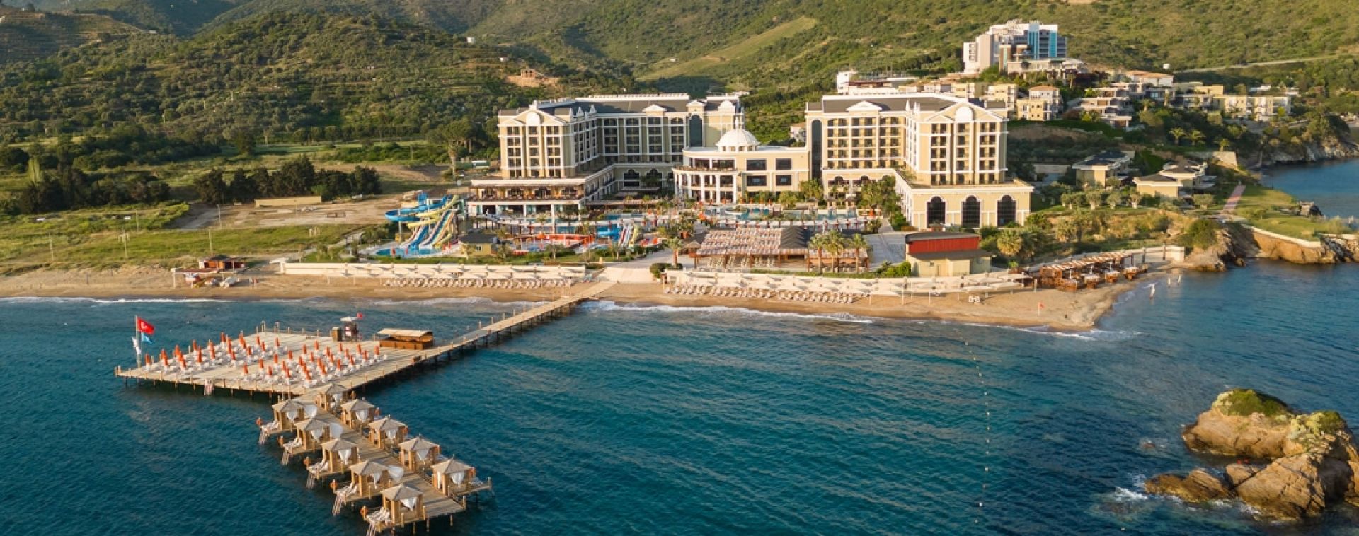 Намира се на 35 км от летище Измир, на 160 км от летище Милас, на 35 км от центъра на Кушадасъ и на 3 км от центъра на Йоздере. Построен през 2015 г., с обща площ 45 000 м².