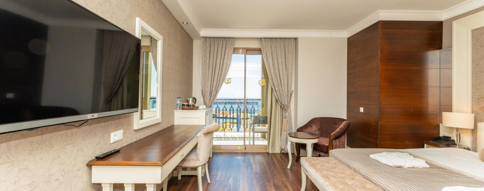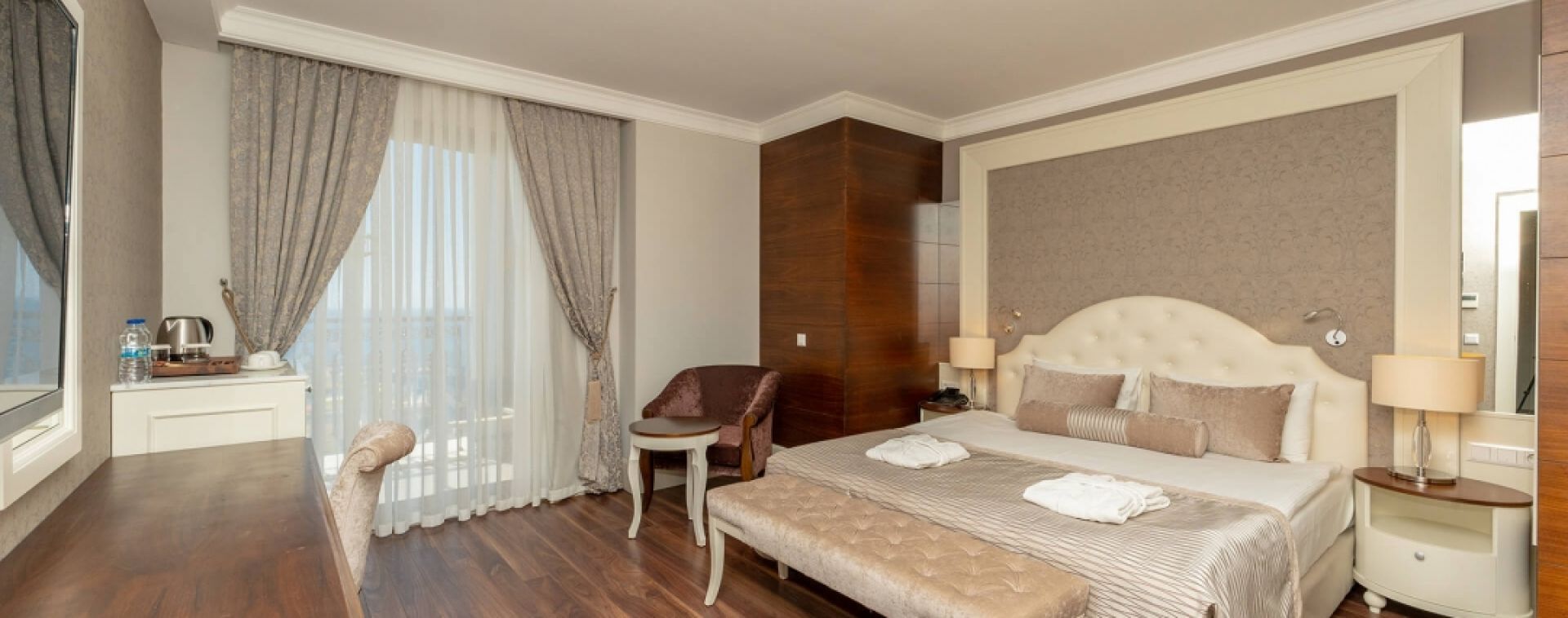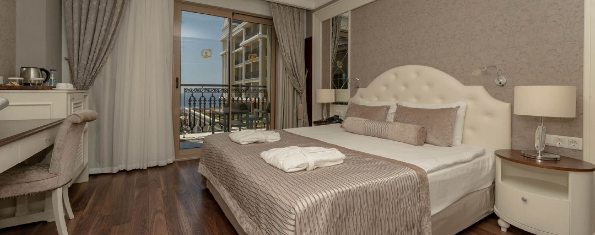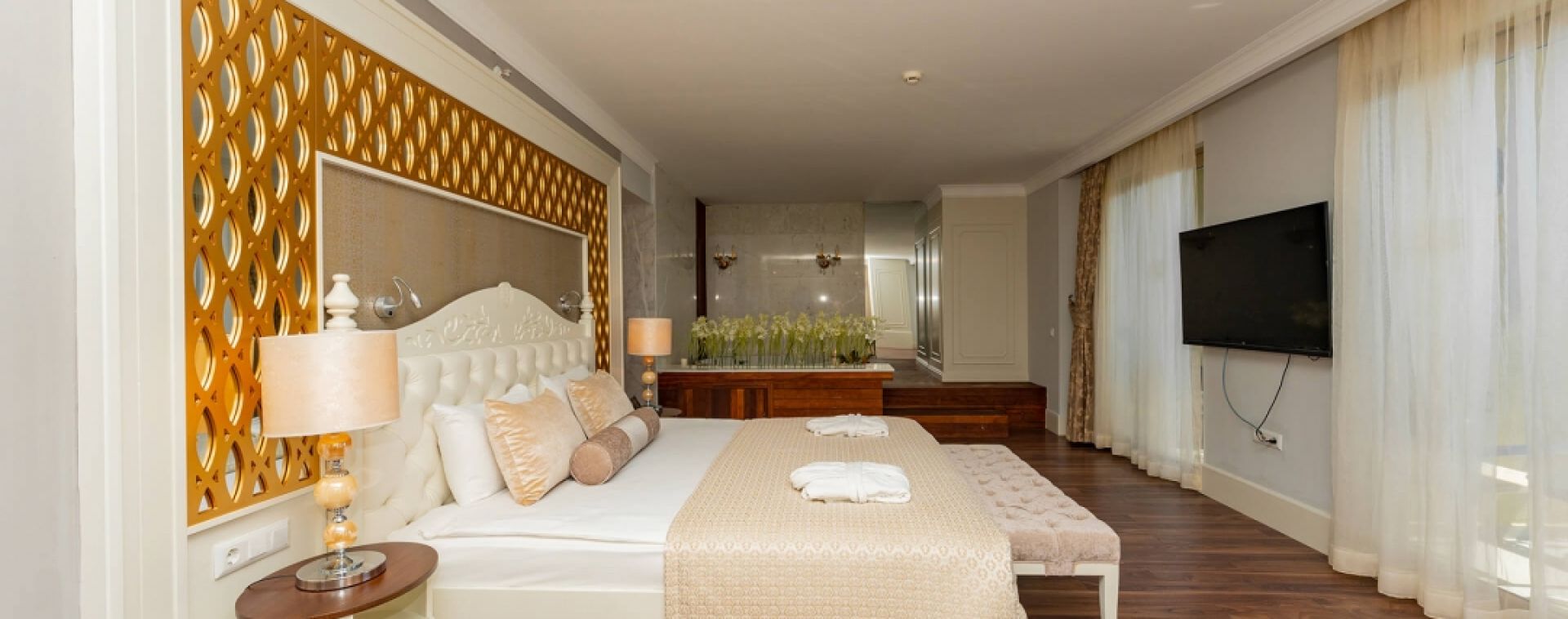 Хотелът разполага с 470 стаи, от които 406 Standard room (с изглед градина, частичен изглед море и изглед море - 29 m²), 50 Family suite (40 с изглед море, 2 спални, 1 баня - 36 m²: 10 с изглед градина, 2 спални, 1 баня - 42 m² ), 9 Royal deluxe suite (с изглед море, 1 спалня, 1 всекидневна, 2 бани - 69 m² ), 4 Laguna suite (с изглед море, 2 спални, 1 всекидневна, 2 бани - 86 m²), 1 Presidental suite (с изглед море, 2 спални, 1 всекидневна, 2 бани, сауна, джакузи - 165m²) и 5 Handicapped (пригодени за хора с ограничена подвижност - 29 m²). Всички стаи са оборудвани с климатик, телевизор, телефон, баня с душ, сешоар, сет за чай/кафе, минибар (ежедневно зареждане с безалкохолни напитки, бира, вода и специално мляко Nesquik за семейства с деца - безплатно), сейф (безплатен), балкон, Wi-Fi интернет. Икономичните стаи са на приземен етаж без балкон. Почистване на стаите и смяна на кърпите - всеки ден, смяна на спалното бельо - 3 пъти в седмицата.