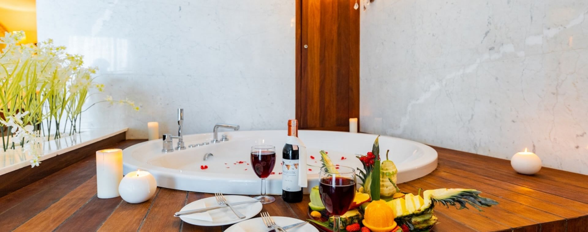 Пакет "Младоженци": Специална декорация на стаята, кошница с плодове и вино в стаята при пристигане, приоритетна резервация за едно посещение в един от а-ла-карт ресторантите (с предварителна резервация).
