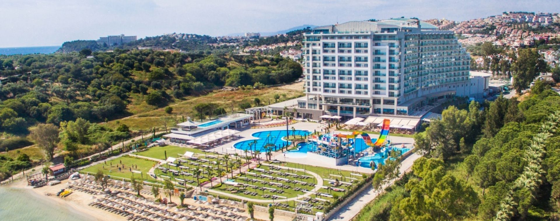 Хотелът се намира на 75 км от летище Измир, на 116 км от летище Милас, на 5 км от центъра на Кушадасъ на брeга на морето. Построен през 2015 г., с обща площ 35 000 м². Реновиран през 2023 г.
