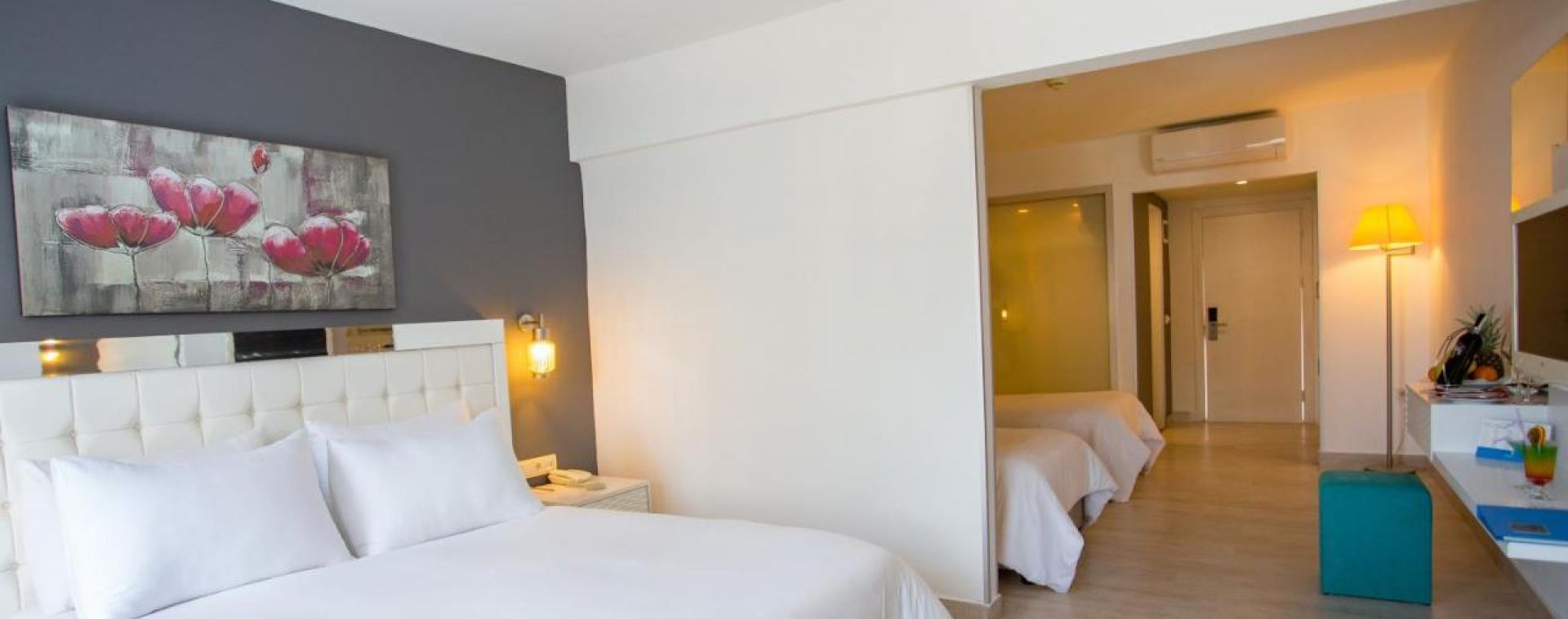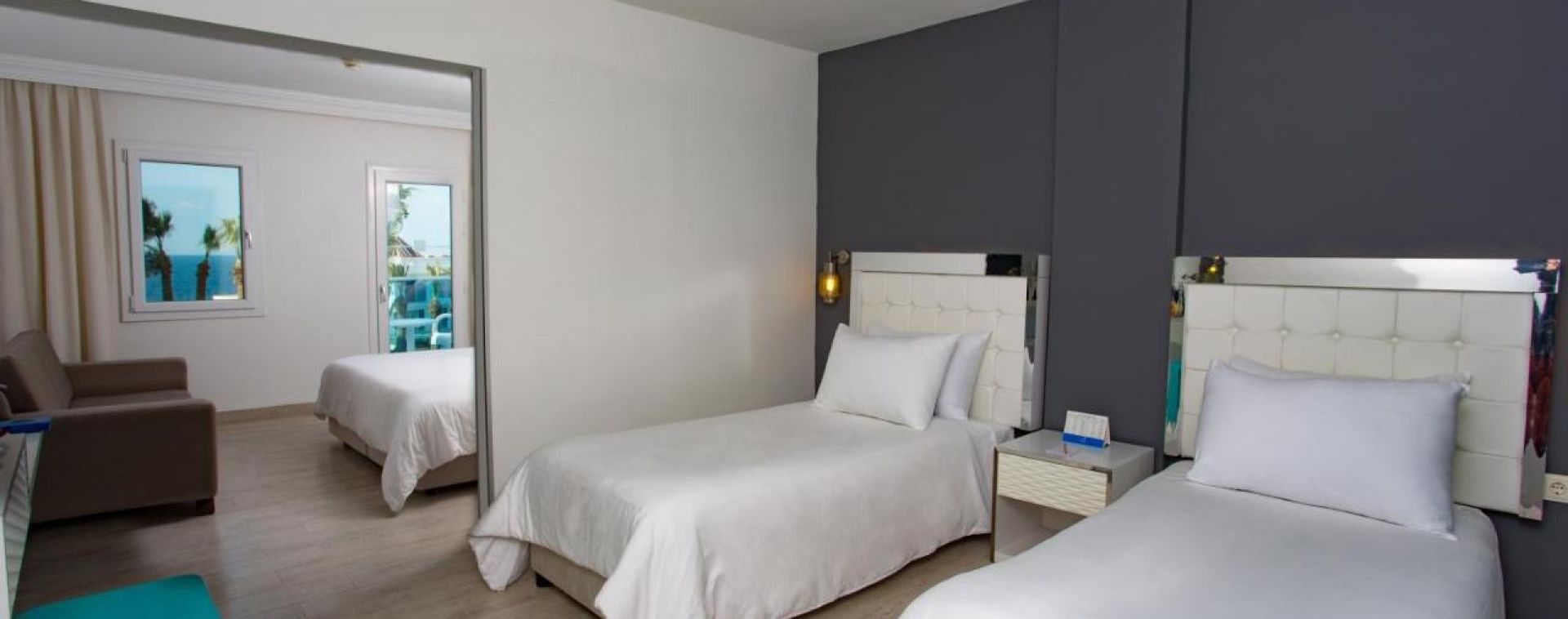 Хотелът разполага с 260 стаи, разпределени в 4 блока- 249 стандартни стаи, 9 джуниър суита, 4 суита и 1 делукс суит. Всички стаи са оборудвани с климатик, телевизор, телефон, баня с душ / вана, сешоар, минибар, сейф /безплатно/, балкон, Wi-Fi интернет /безплатно/. Безплатно еднократно зареждане на минибара с вода и безалкохолни напитки при настаняване. Всяко следващо зареждане се заплаща допълнително. Почистване на стаите – всеки ден, смяна на бельото и кърпите – 3 пъти в седмицата.
