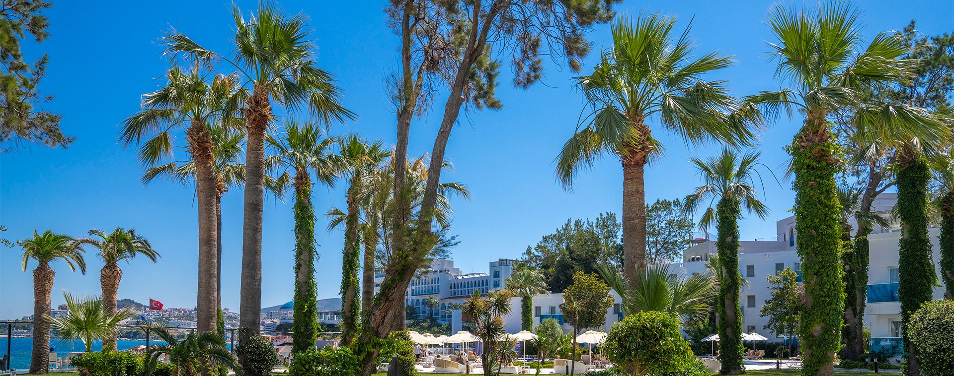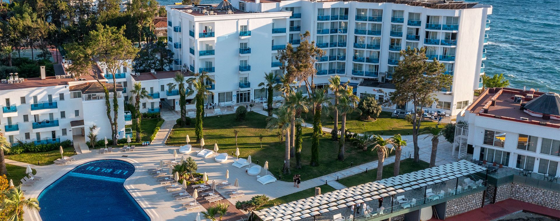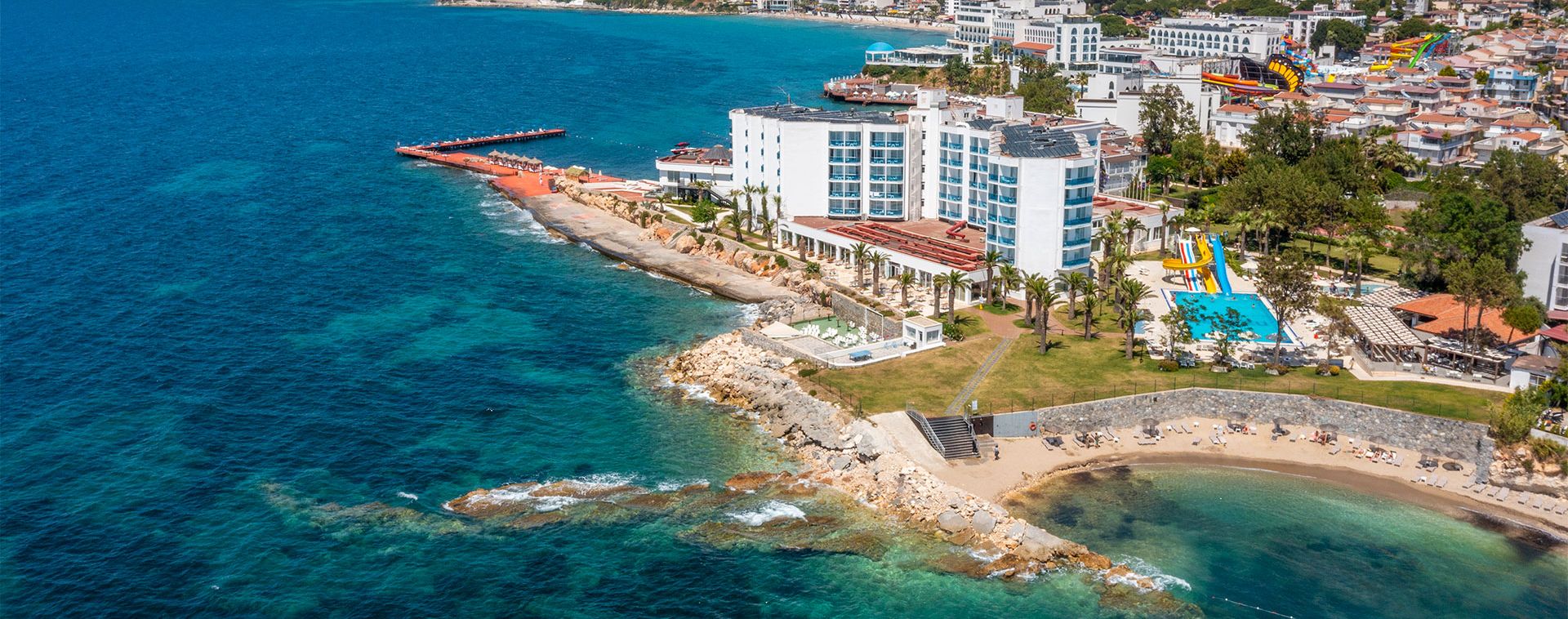 Хотелът се намира на 70 км. от летище Измир, на 125 км. от летище Милас, на 3 км. от центъра на Кушадасъ, на брега на морето. Построен 1991 г. на площ 18 824 кв.м, реновиран през 2014-2015 -2018 г.
