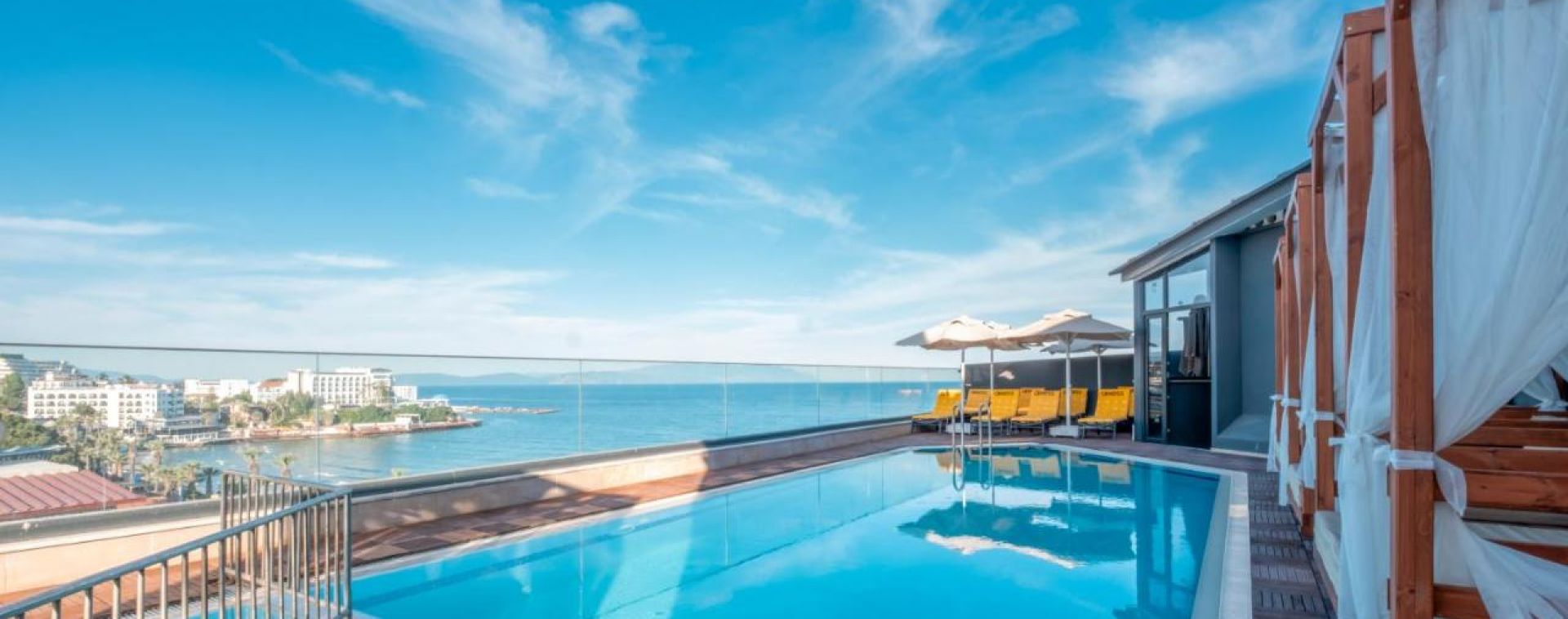 Хотелът се намира на 70 км от летище Измир, на 130 км. от летище Милас, на 3 км. от центъра на Кушадасъ, непосредствено разположен до плаж Лейдис бийч. Построен 1990 г, изцяло реновиран 2024 г/2025 г.