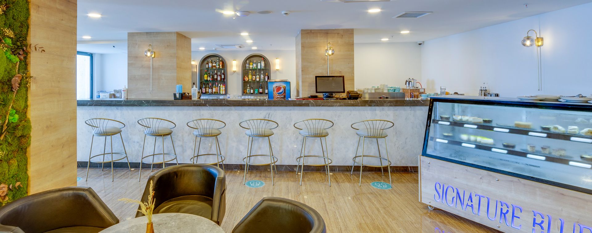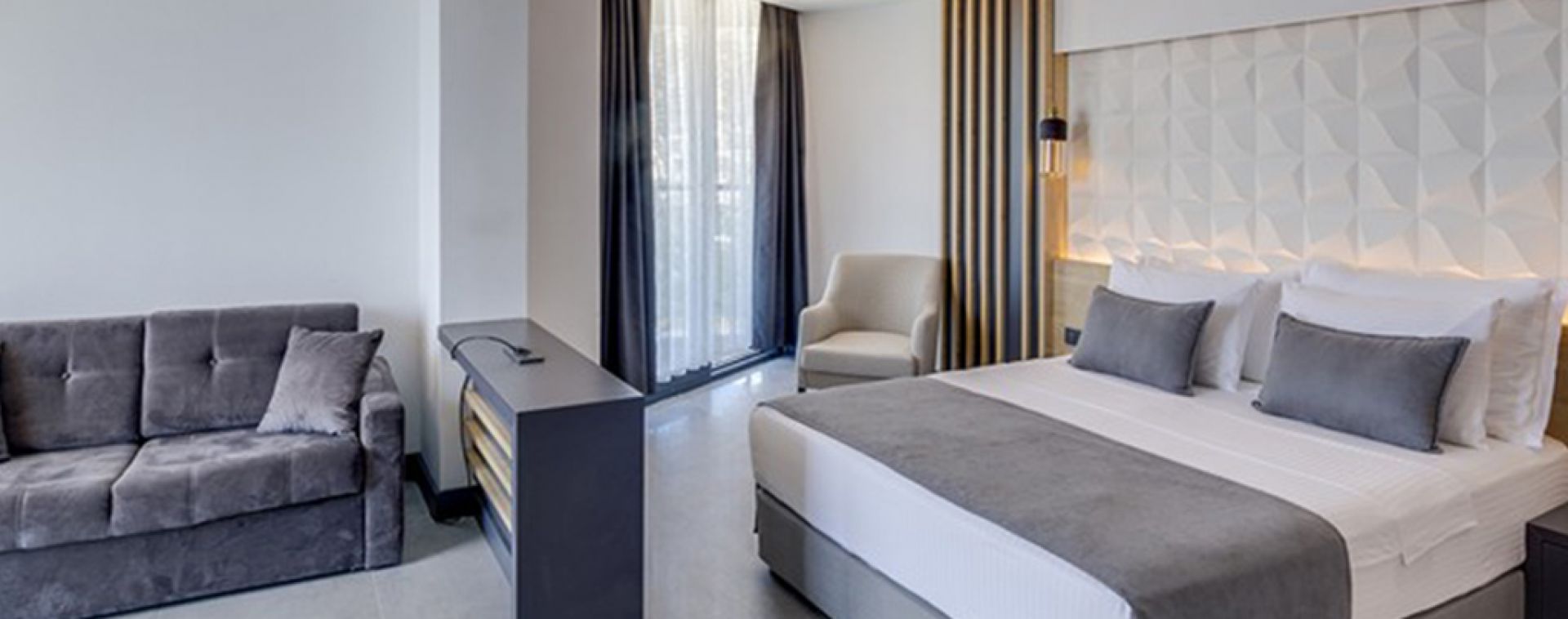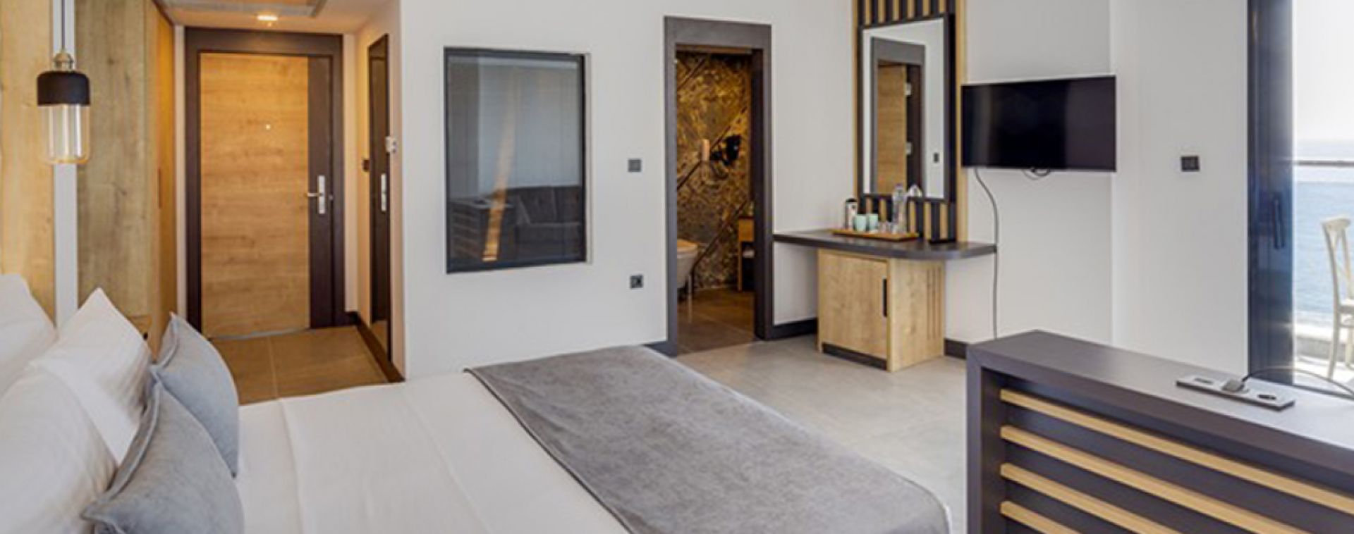 Хотелът разполага с 111 стаи с модерен дизайн, от които 91 deluxe room (22 кв.м, с изглед море), 6 junior suite (30кв.м), 6 corner room (24 кв.м), 1 King Suit (1 спалня, 1 хол, 35 кв.м), 7 promo room (22 кв.м, без изглед море), всички оборудвани с климатик, телевизор, сешоар, телефон, баня с душ / вана, сет за чай / кафе, мини бар, сейф, Wi-Fi, балкон или тераса. Почистване на стаите - всеки ден.