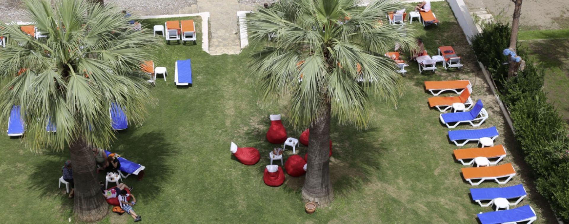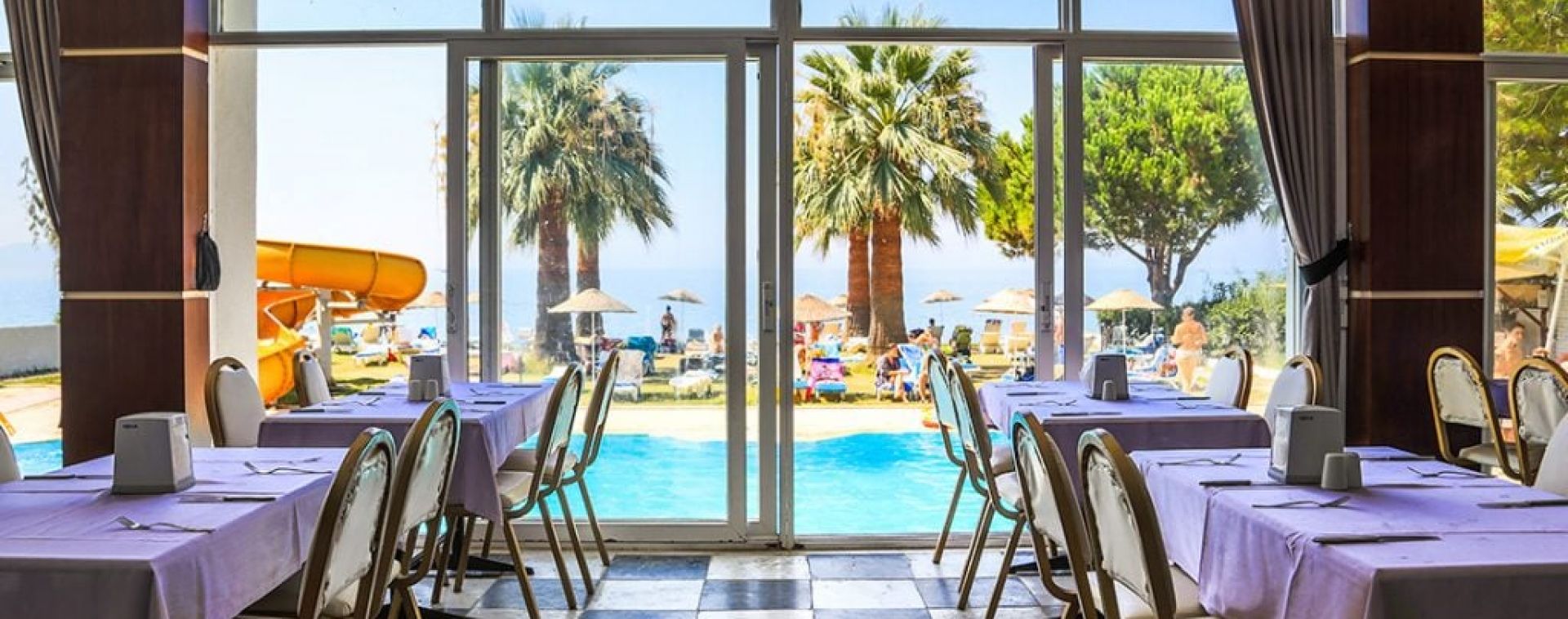 Намира се на 95 км от летище Измир, на 145 км. от летище Милас, на 22 км. от центъра на Кушадасъ, в селището Гюзелчамлъ, на брега на морето. Частично реновиран 2024 г.