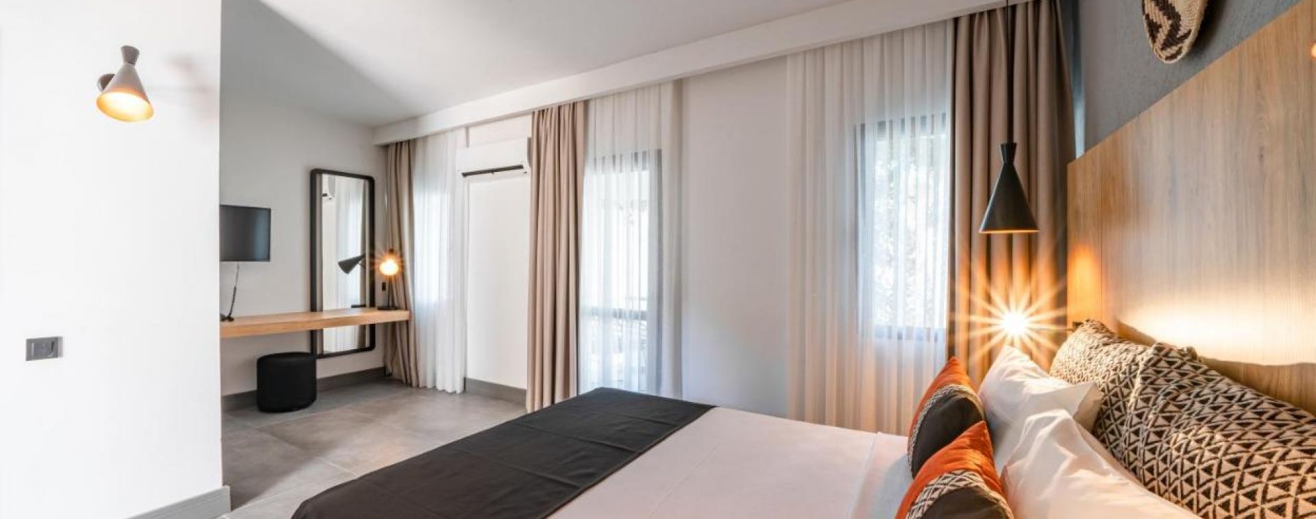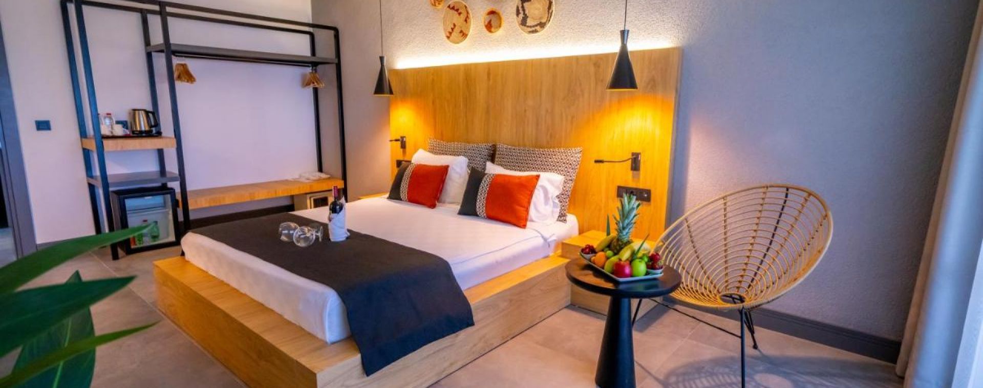 Основна сграда: 102 Standard Sea View Room (26 м²) и 11 Suit Room Sea View Room (2 спални, 1 баня - 65м²).