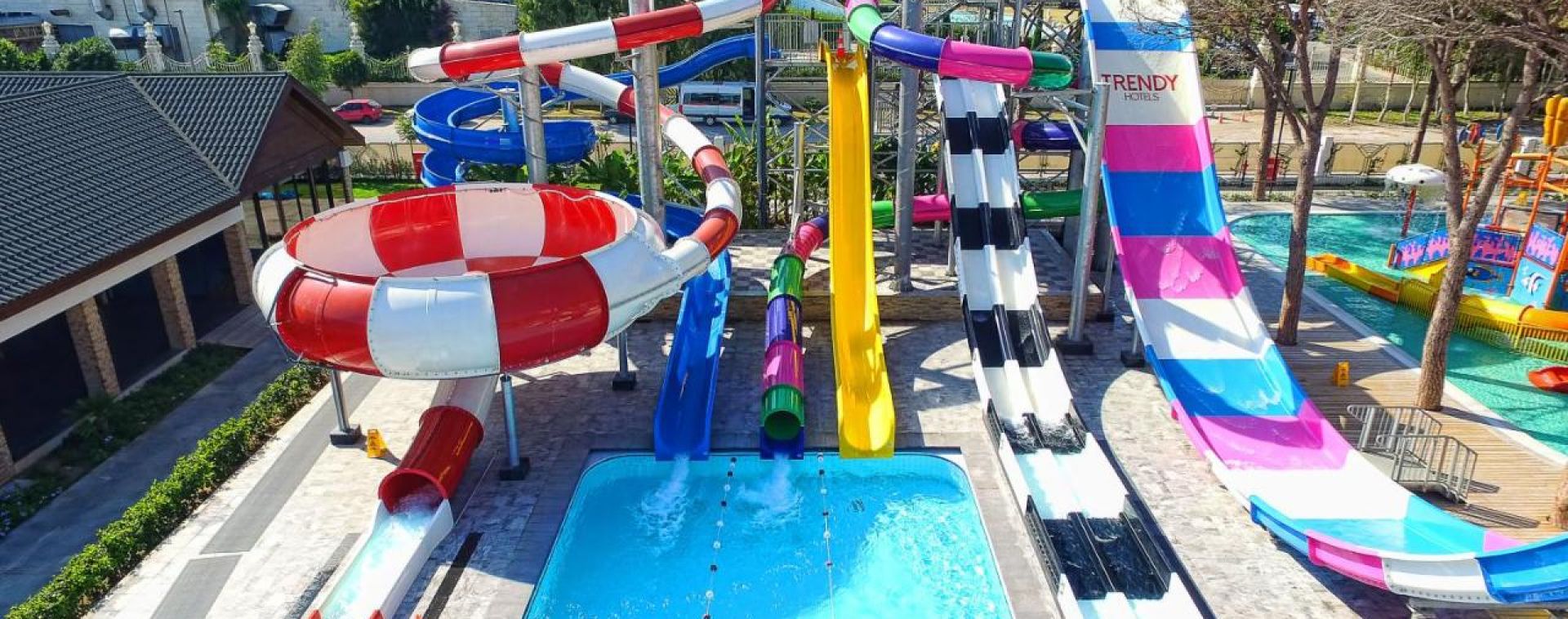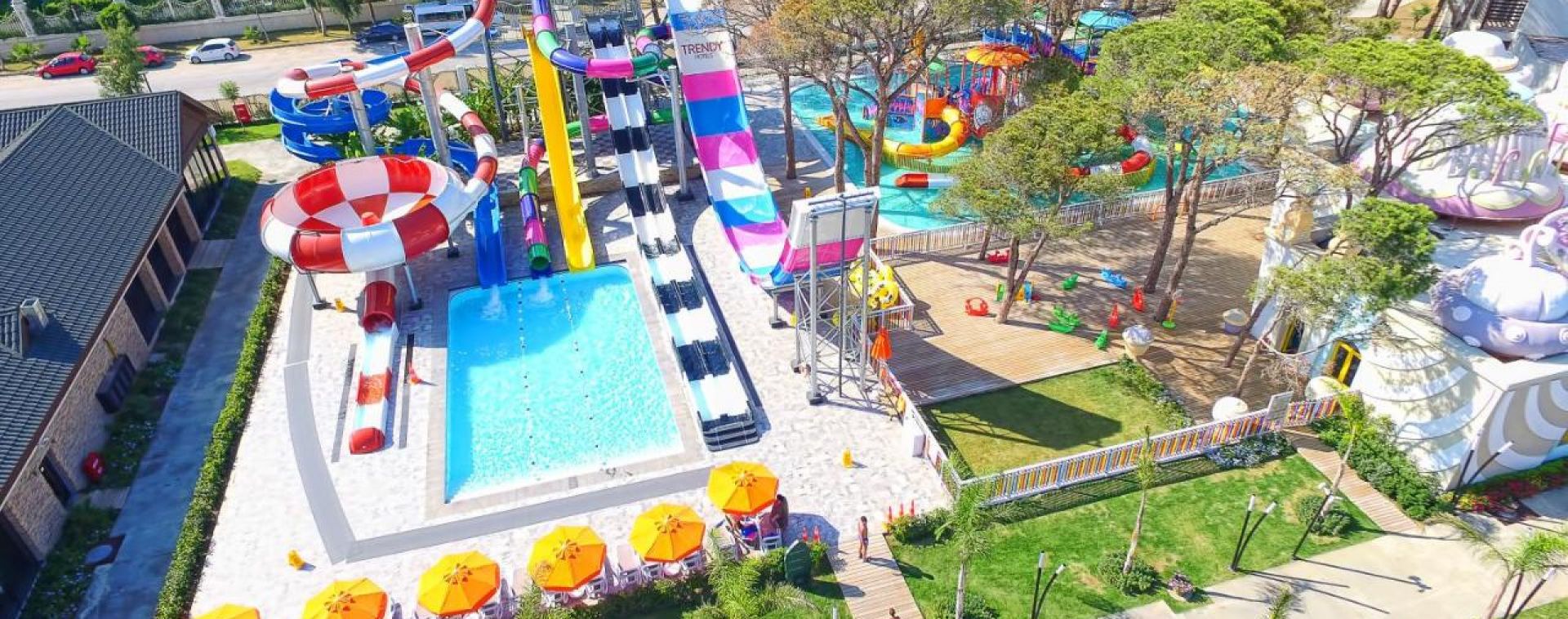 Основен ресторант, 5 a лa карт ресторанта (с предварителна резервация), 9 бара, 5 открити и 1 закрит басейн, 4 водни пързалки, аквапарк, мини клуб(4 - 12г.) магазини, Спа център, дискотека, TВ зала, 9 конферентни зали, билярд, боулинг, тенис корт, фитнес цетър, дартс, тенис на маса, плажен волейбол, паркинг.