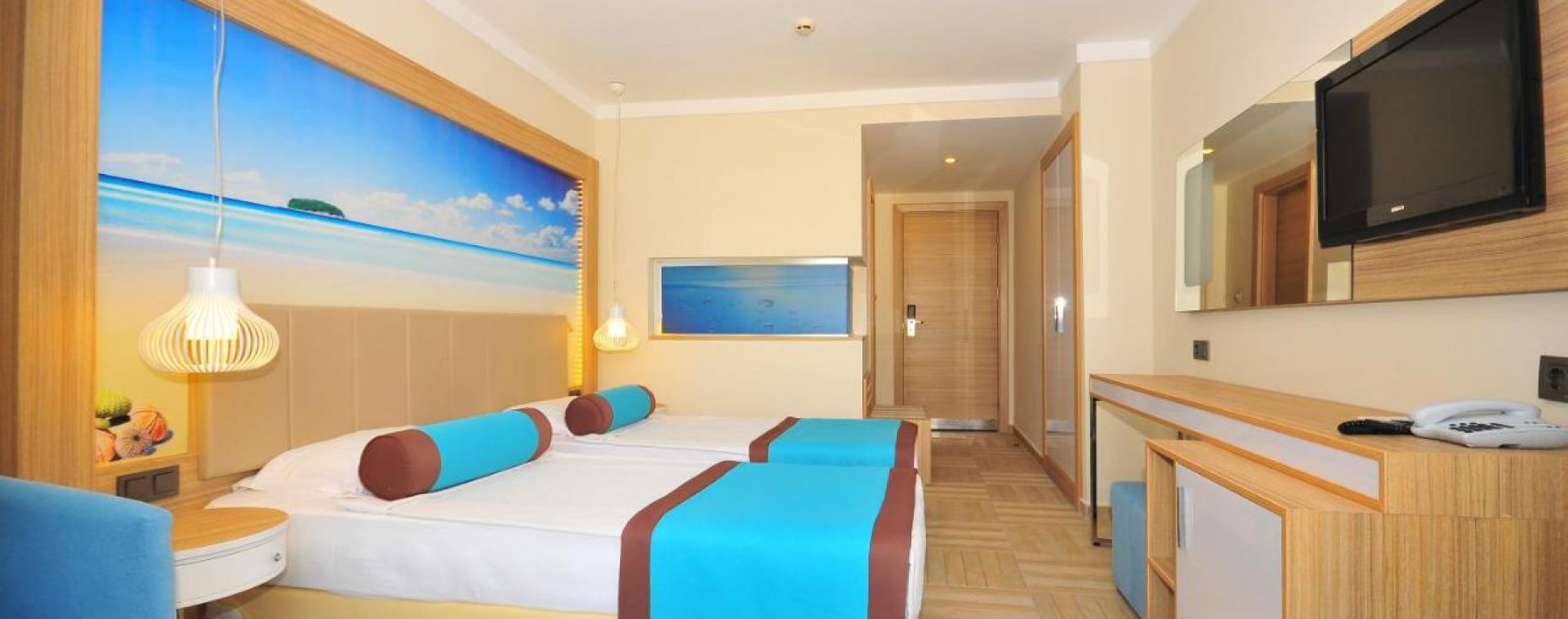 Основен ресторант, а-ла-карт ресторант (италиански и рибен - платен) ,6 бара, дискотека, 4 открити (един с 2 водни пързалки) и 1 закрит басейн, магазини, СПА център, конферентна зала, паркинг. За децата: Детски басейн, детска площадка, мини клуб (4-12 г.), мини дискотека. Безплатни услуги: Сауна, турска баня, парна баня, фитнес, анимация, WI-FI интернет в лоби. Платени услуги: Масаж, фризьор, магазини, интернет кафе, игрални автомати, мини голф. ПЛАЖ: Собствен, пясъчен – чадъри и шезлонги на плажа и при басейна – безплатно, плажни кърпи – срещу депозит.