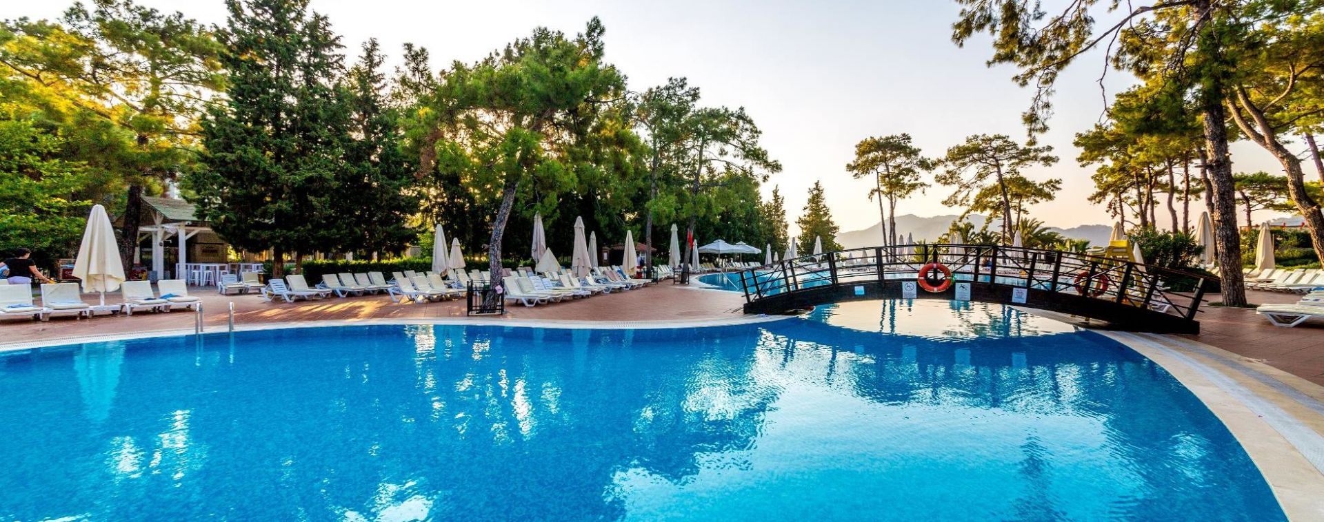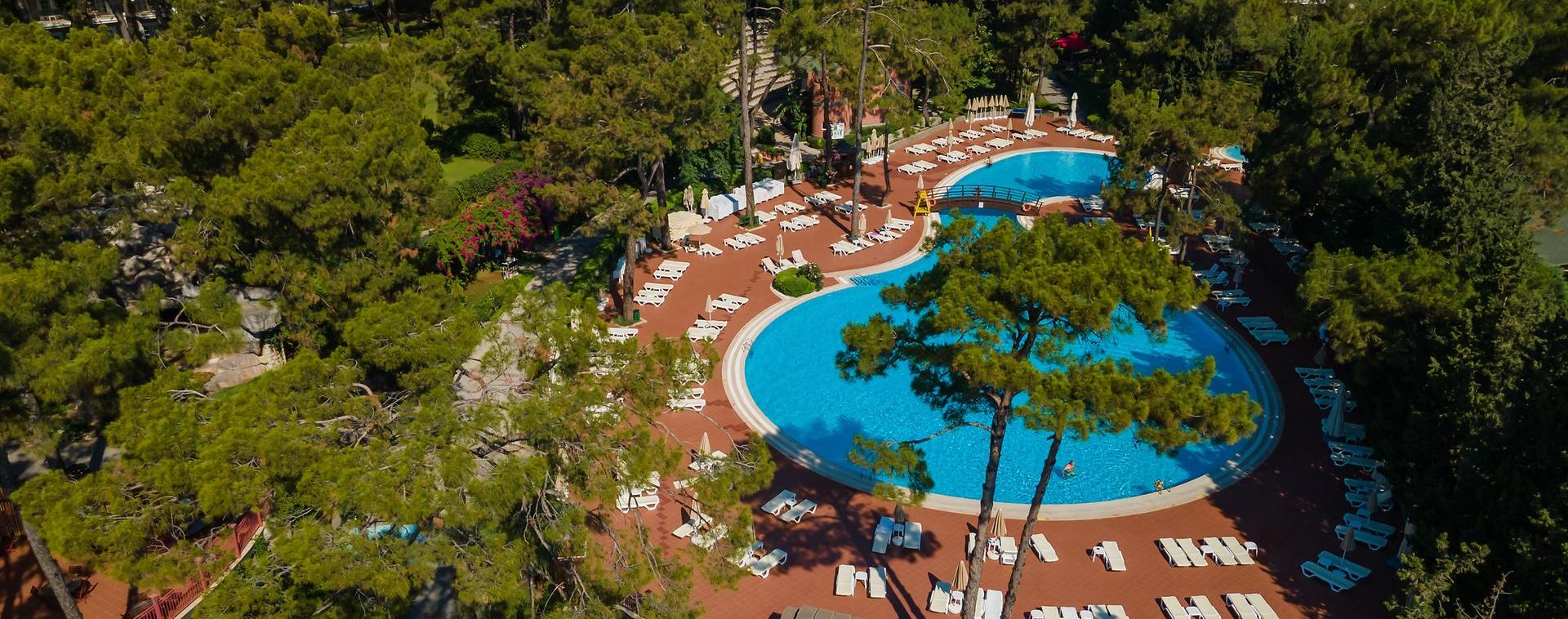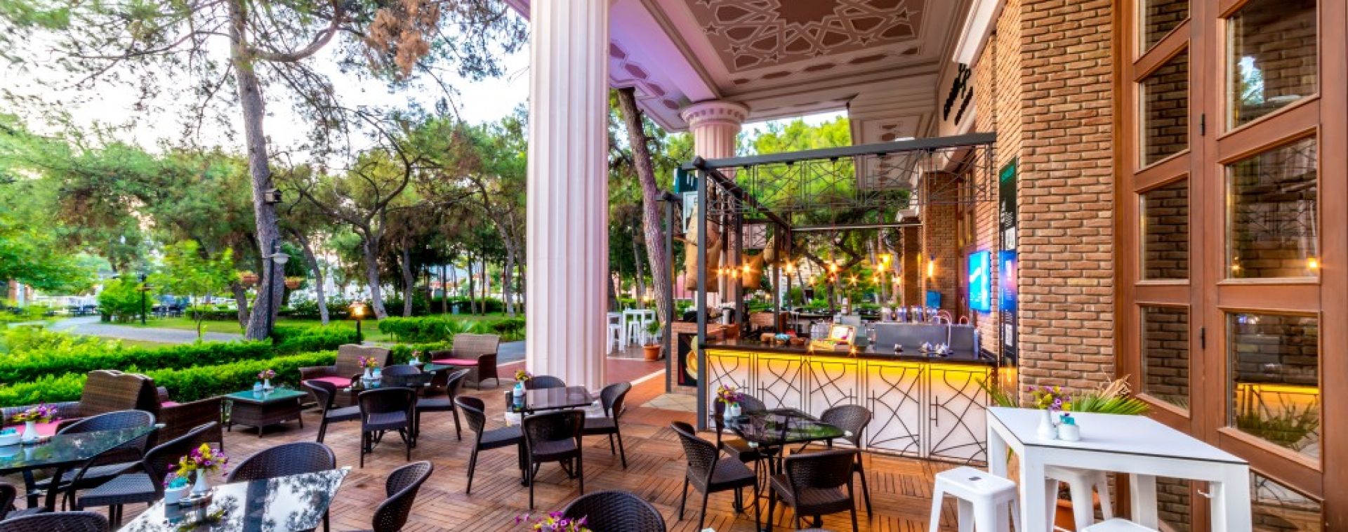 Основен ресторант, 5 а-ла-карт ресторанта (стек хаус, италиански ресторант, китайски ресторант, японски, рибен - срещу заплащане, кебап хаус - безплатен), 5 бара, 3 открити и 1 закрит басейн, магазини, СПА център, конферентни зали, паркинг. За децата: Детски басейн с водни пързалки, детска площадка, мини клуб (4-12 г.), мини амфитеатър, лунапарк. Безплатни услуги: Сауна, турска баня, парна баня, фитнес, плажен волейбол, аеробика, тенис на маса, тенис на корт, дартс, анимация, музика на живо. Платени услуги: Масаж, билярд, игрални автомати, оборудване на тенис корт, осветление за тенис корт, уроци по тенис, моторни водни спортове. Плаж: Собствен, пясъчен, 2 платформи – чадъри и шезлонги на плажа и при басейна – безплатно, плажни кърпи – срещу депозит.