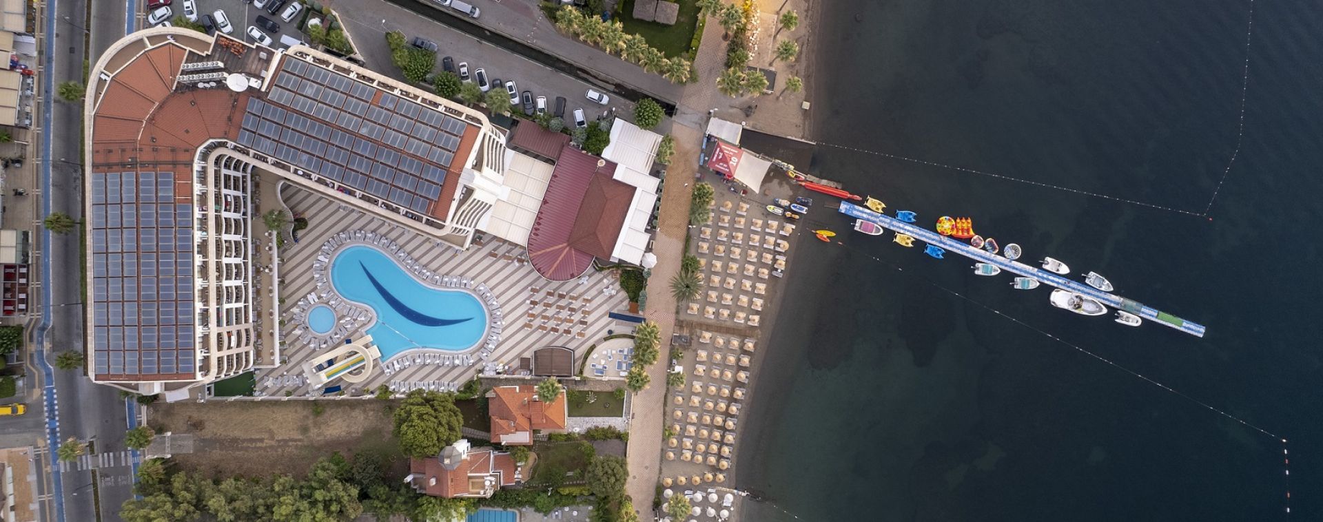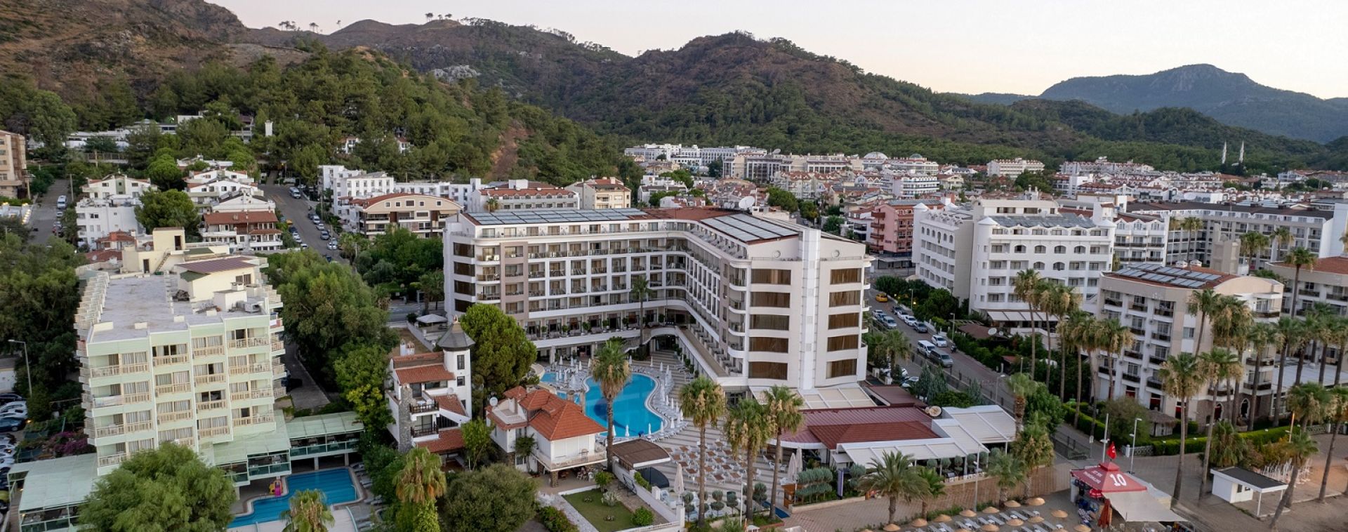 Хотелът се намира на 130 км. от летище Милас, на 90км от летище Даламан, на 3 км. от центъра на Мармарис, на брега на морето. Построен през 2012 г. с обща площ от 5 500 м2.