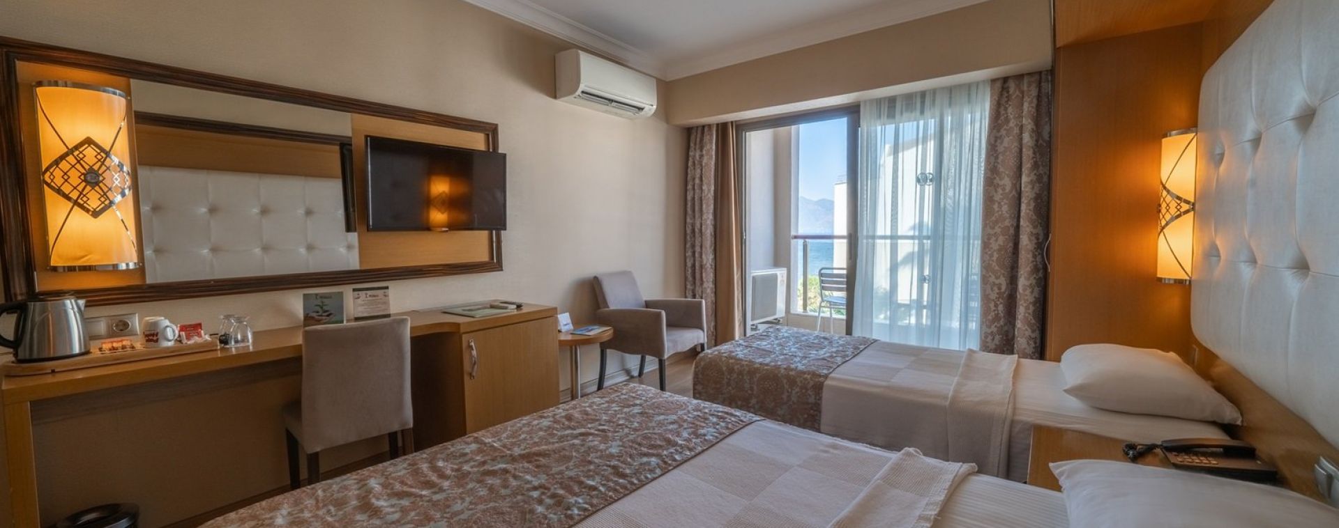 На 137км от летище Милас, на 99км от летище Даламан, На 3.5 км. от центъра на Мармарис, на 300 м. от морския бряг.