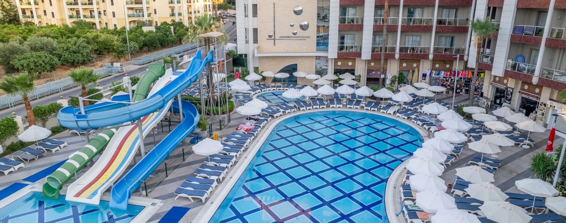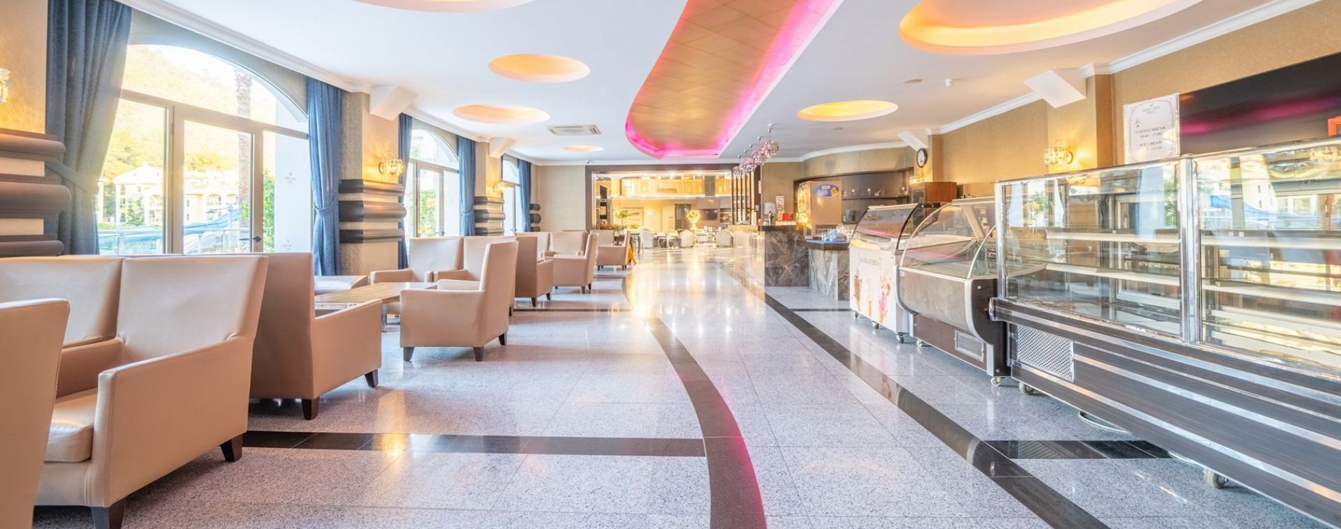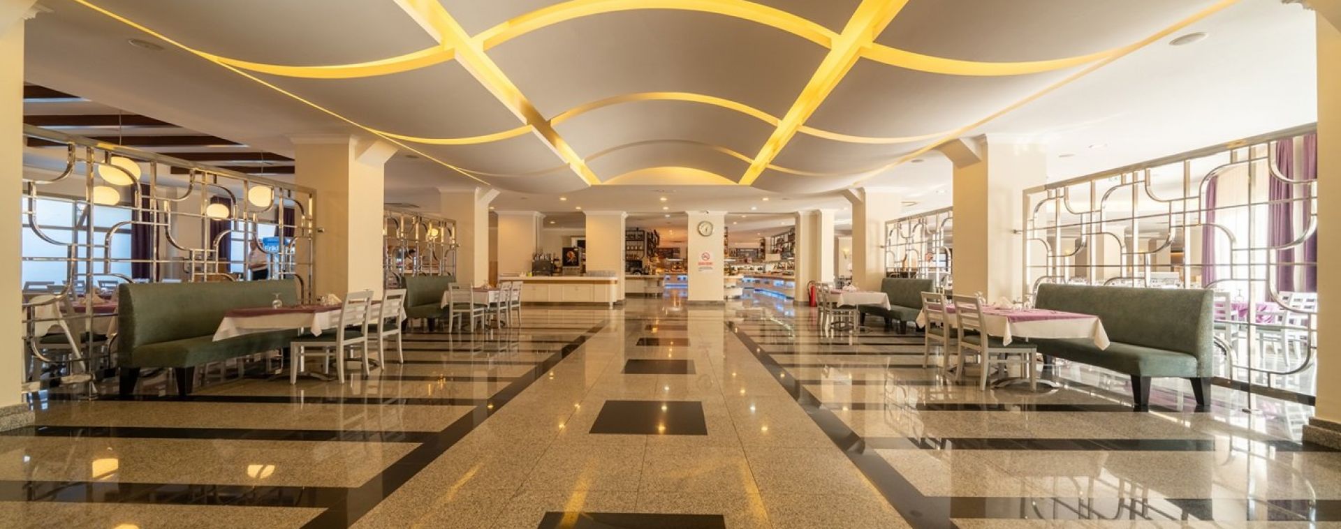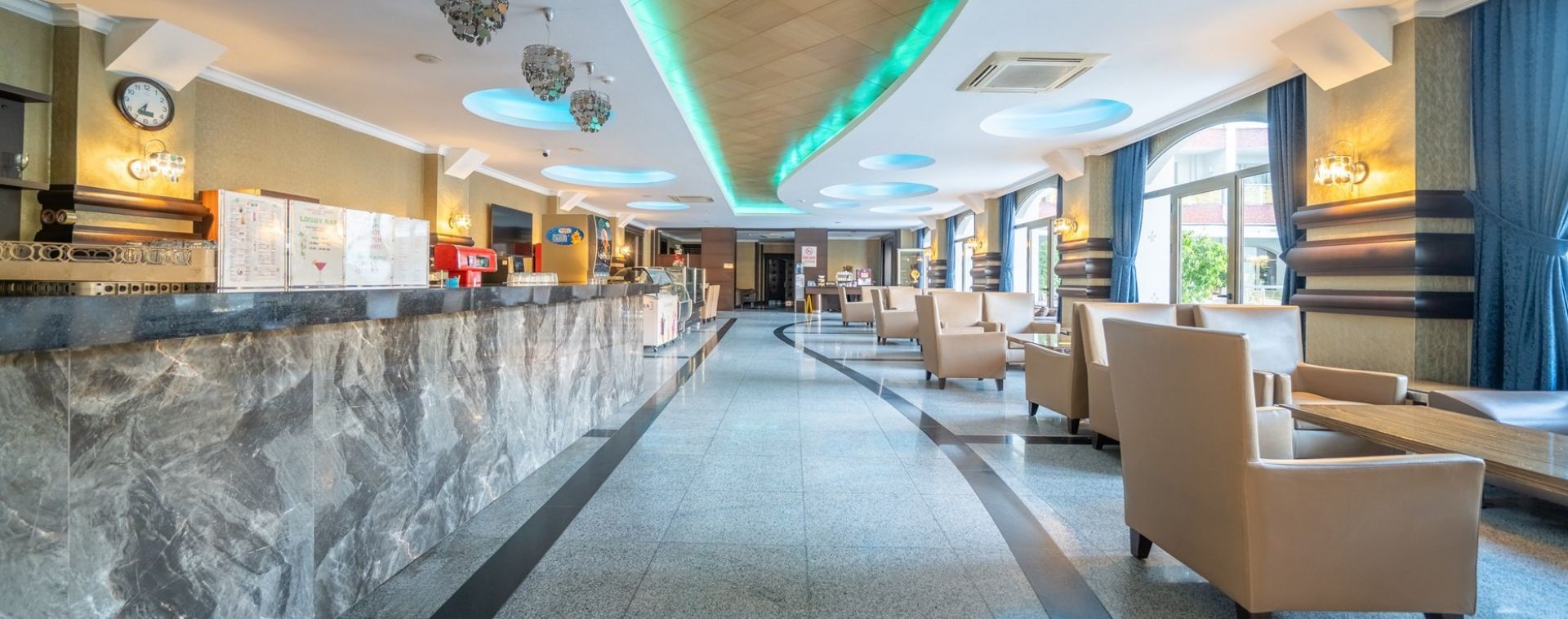 Основен ресторант, 3 бара, открит басейн, закрит басейн, детски басейн, водна пързалка, СПА център, детски клуб, аеробика, билярд, дискотека, анимация, магазини, конферентни зали. Безплатни услуги: сауна ,турска баня, фитнес, WI-FI интернет в лоби, тенис на маса. Платени услуги: билярд, интернет кафе, пералня, лекар, детегледачка ,Спа и Уелнес център Плаж: Градски плаж - Чадъри и шезлонги при басейна – безплатни, а на плажа – платени.