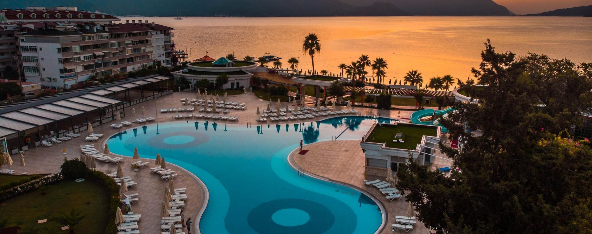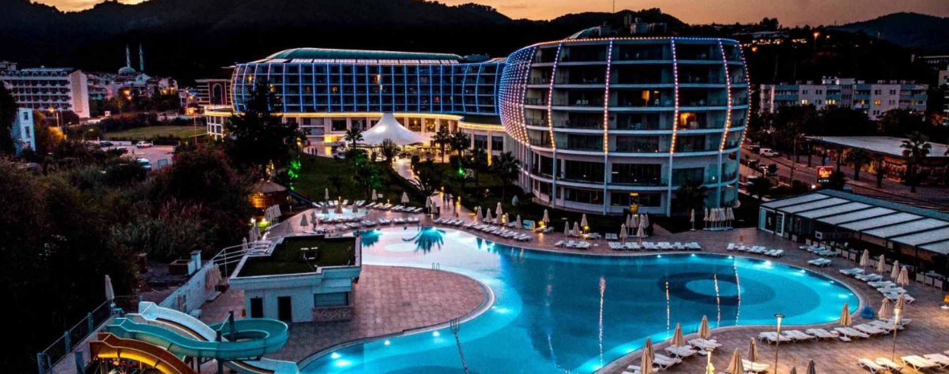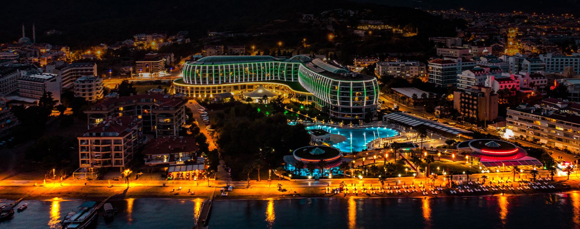 Хотелът се намира на 90км от летище Даламан, на 1км. от центъра на Мармарис, на брега на морето. Построен е през 2014г. с обща площ от 40 000 м2.