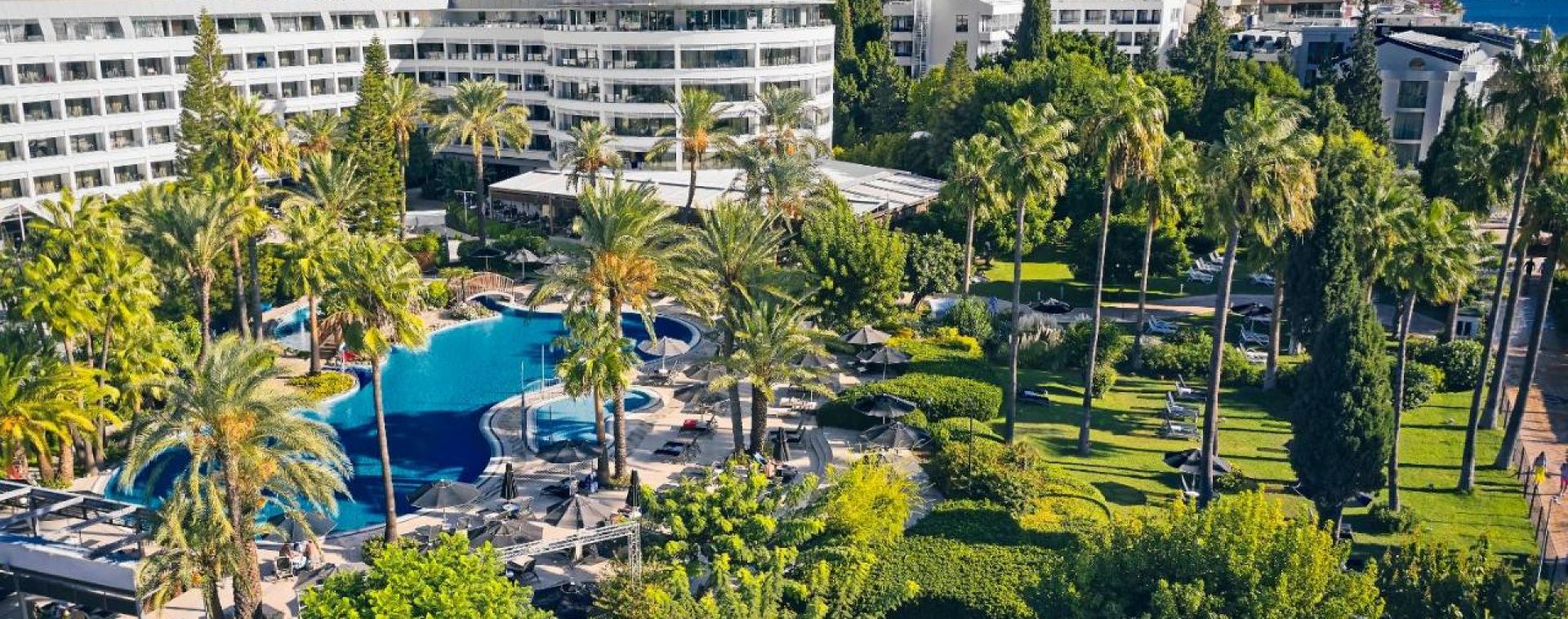 Основен ресторант, 1 а-ла-карт ресторант, 6 бара, СПА център, фитнес център, открит басейн, закрит басейн, джакузи, водна пързалка, 2 тенис корта, волейболно игрище, баскетбол, мини футбол, 4 конферентни зали. За децата - Детска площадка, мини дискотека, детски басейн, анимация. Плаж - Собствен, пясъчен - чадъри и шезлонги на плажа и при басейна - безплатни.