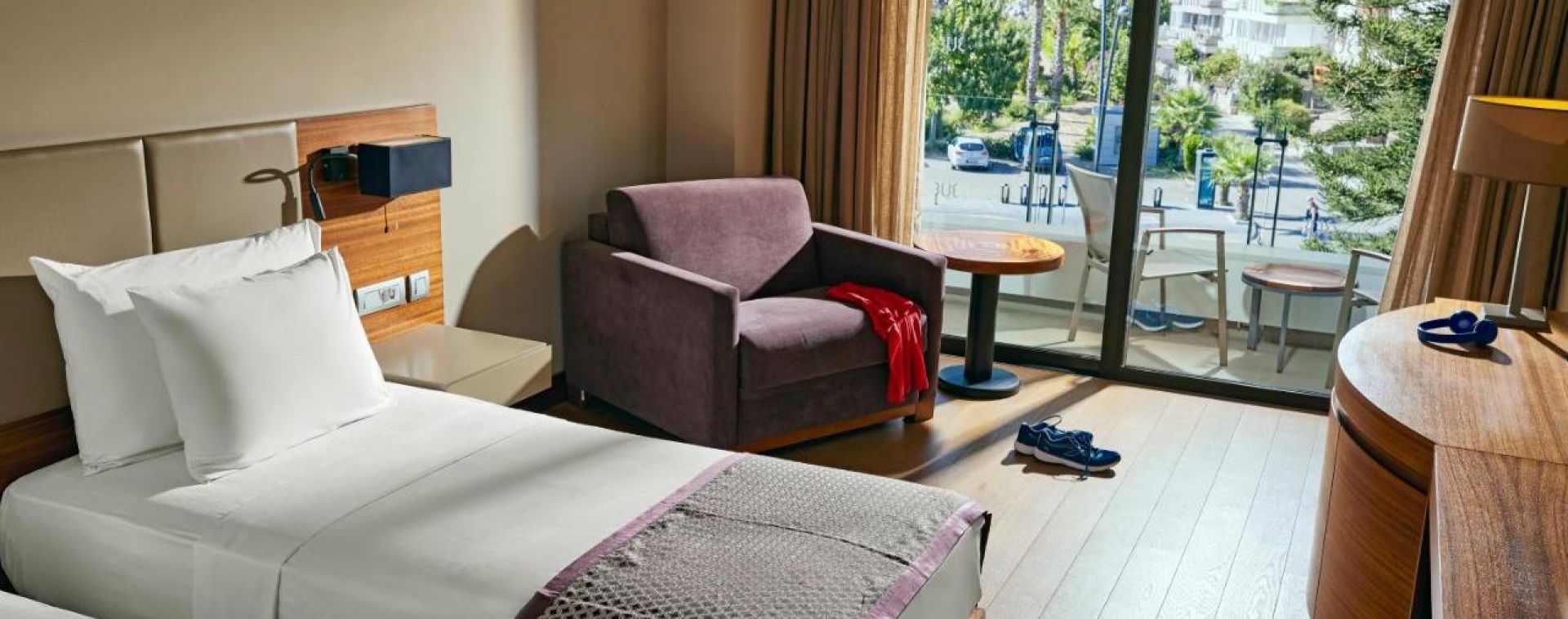 Хотелът разполага общо с 324 стаи, всички оборудвани с климатик, телевизор, телефон, сет за чай/кафе, баня с душ, сешоар, сейф (платен), интернет (платен), балкон. Почистване на стаите - всеки ден, смяна на спалното бельо и кърпите - 3 пъти в седмицата.