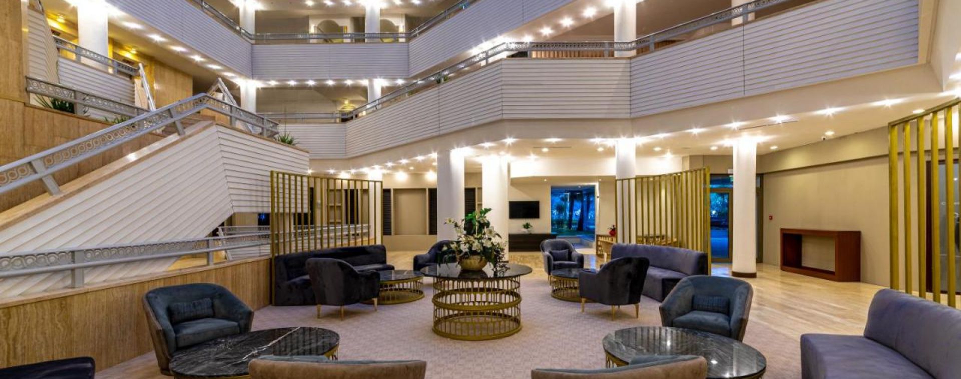 Основен ресторант, 2 бара, сладкарница, 1 основен открит басейн (160 см) и 1 малък басейн (50 см), фитнес център, магазини, паркинг.