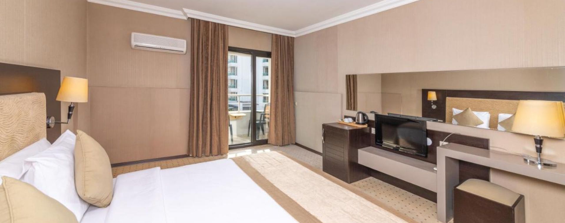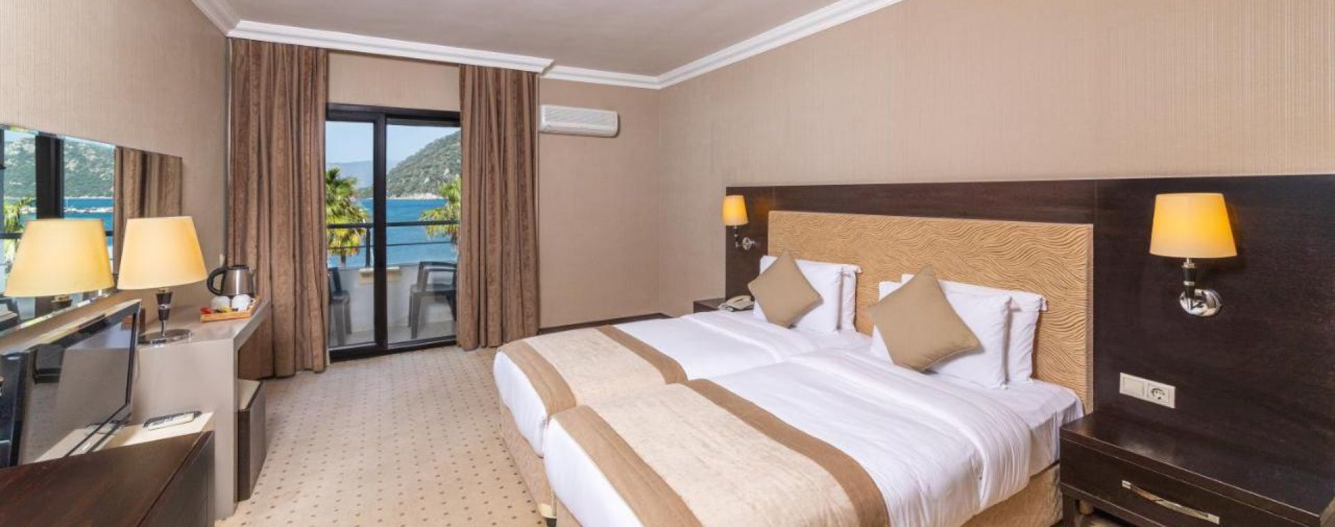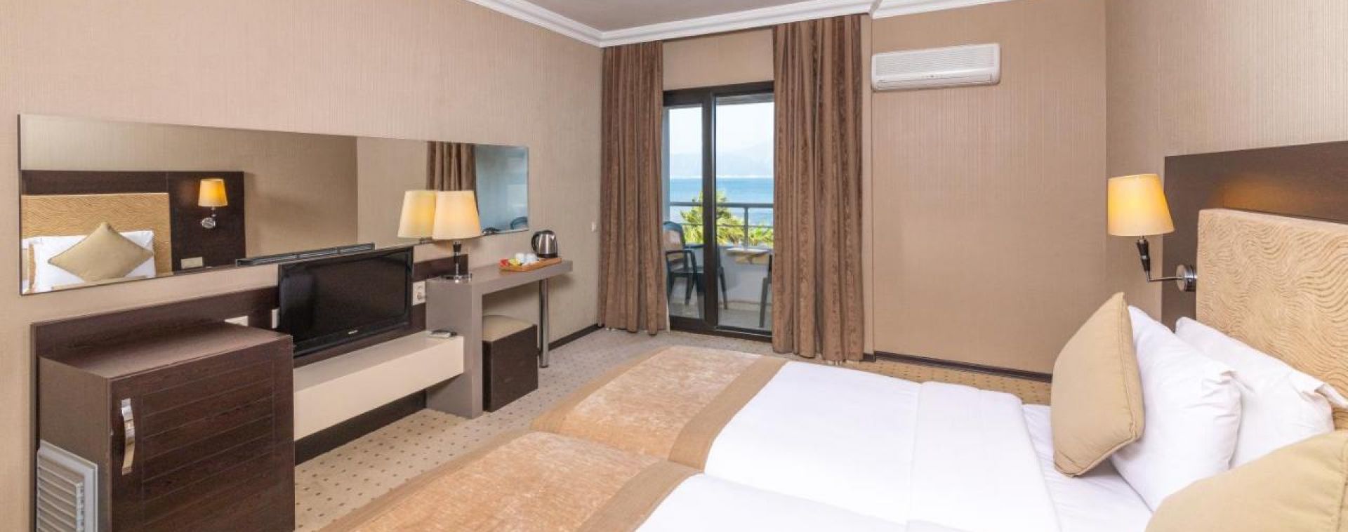 Хотелът разполага с общо 180 стаи, разположени в една основна сграда, от които Standard land/sea view (27м2), Suite room (50м2).Всички стаи са оборудвани с климатик, телевизор, телефон, баня с душ/вана, сешоар, минибар (вода- безплатно), сет за кафе/чай, сейф (безплатен), WI-FI интернет.