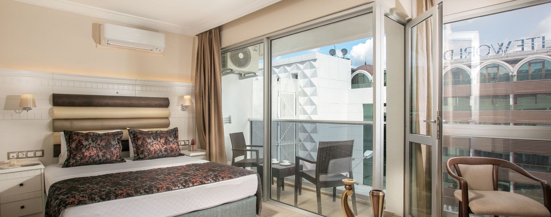 Хотелът разполага с 97 стаи, от 88 които стандартни стаи с балкон (20 -30 кв.м), 9 фамилни стаи с две отделни спални и една баня (40 кв.м). Всички стаи са оборудвани с климатик, телевизор, телефон, баня с душ, сешоар, минибар (зарежда се всеки ден с вода - безплатно), сейф (безплатен). Почистване на стаята и смяна на кърпите - всеки ден, смяна на спалното бельо - 2 пъти в седмицата.