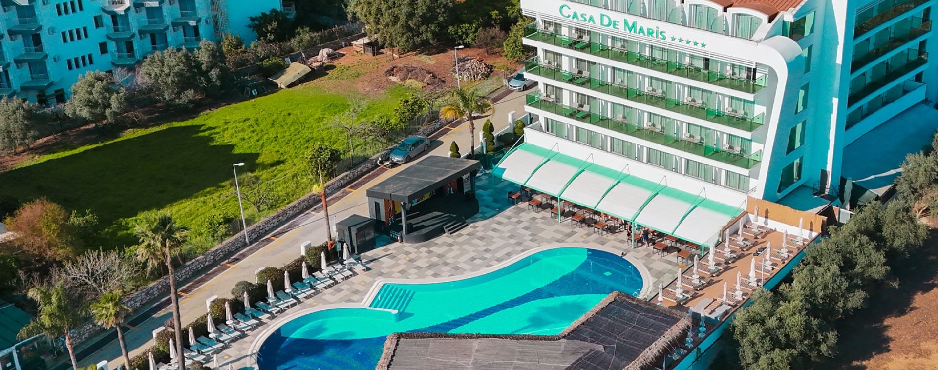Намира се на 90 км от летище Даламан, на 120 км от летище Милас/Бодрум, на 3 км от центъра на Мармарис, на 10 м от морския бряг.