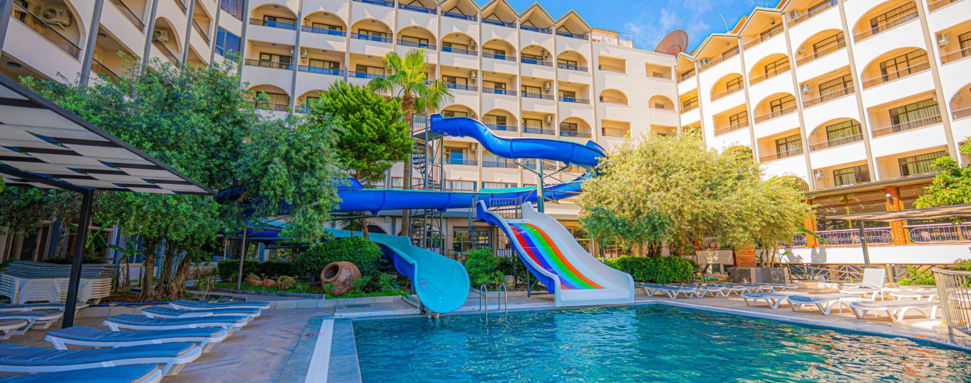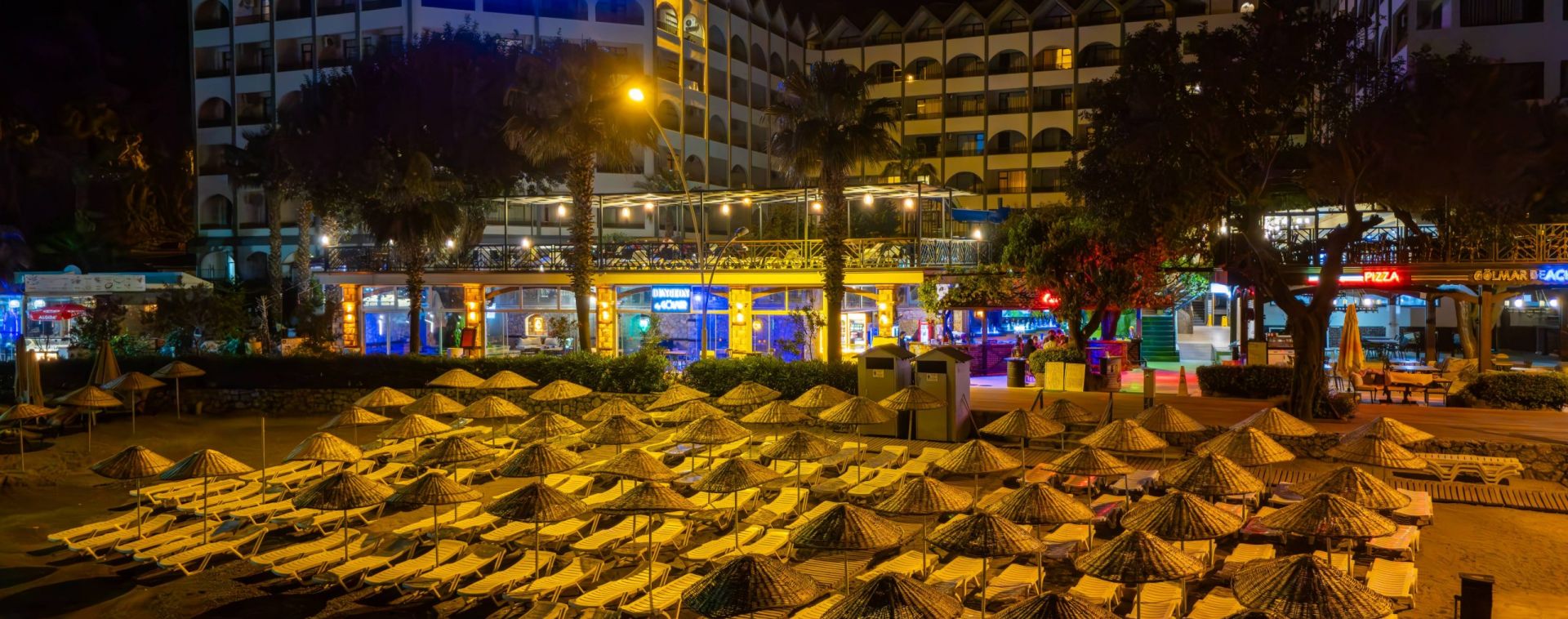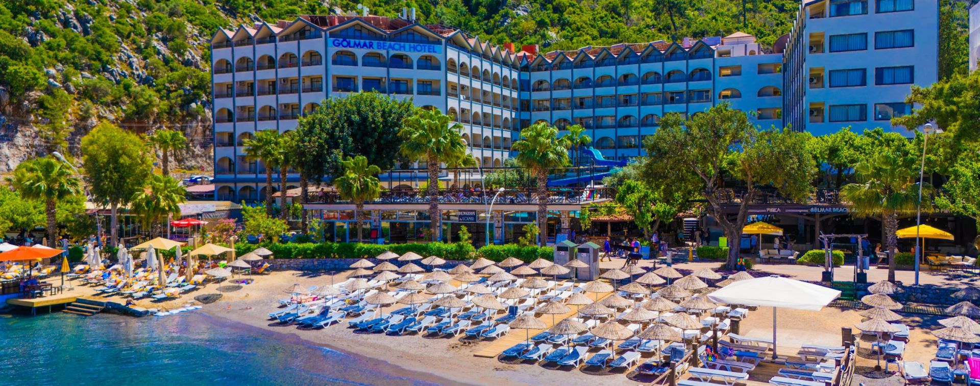 Основен ресторант, а - ла карт ресторант, снек бар, бар на плажа, открит басейн, 2 водни пързалки, Спа център.
