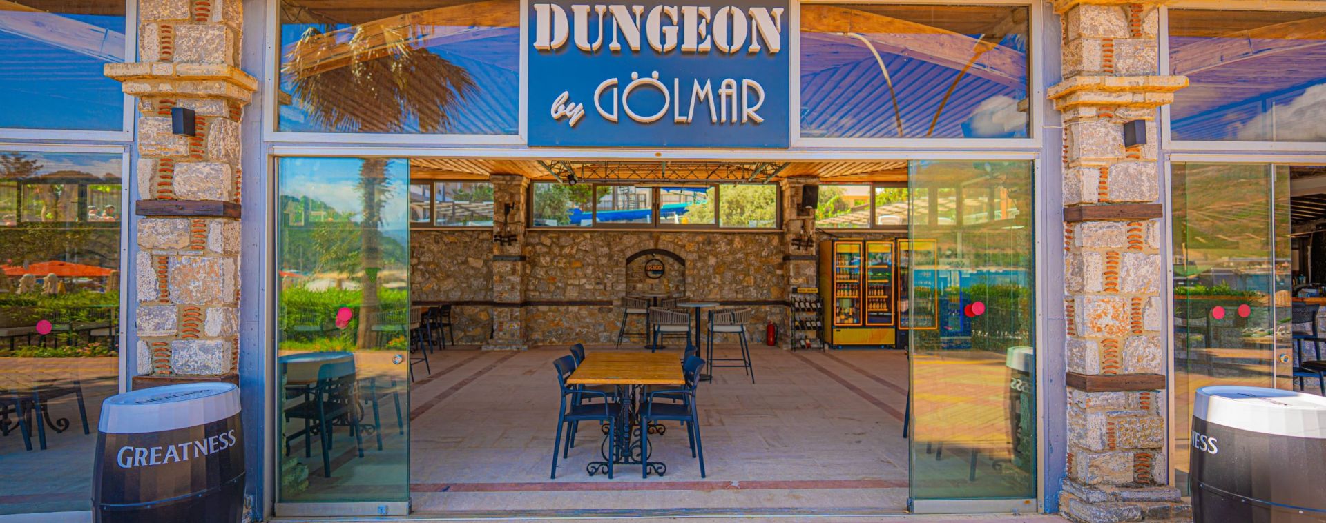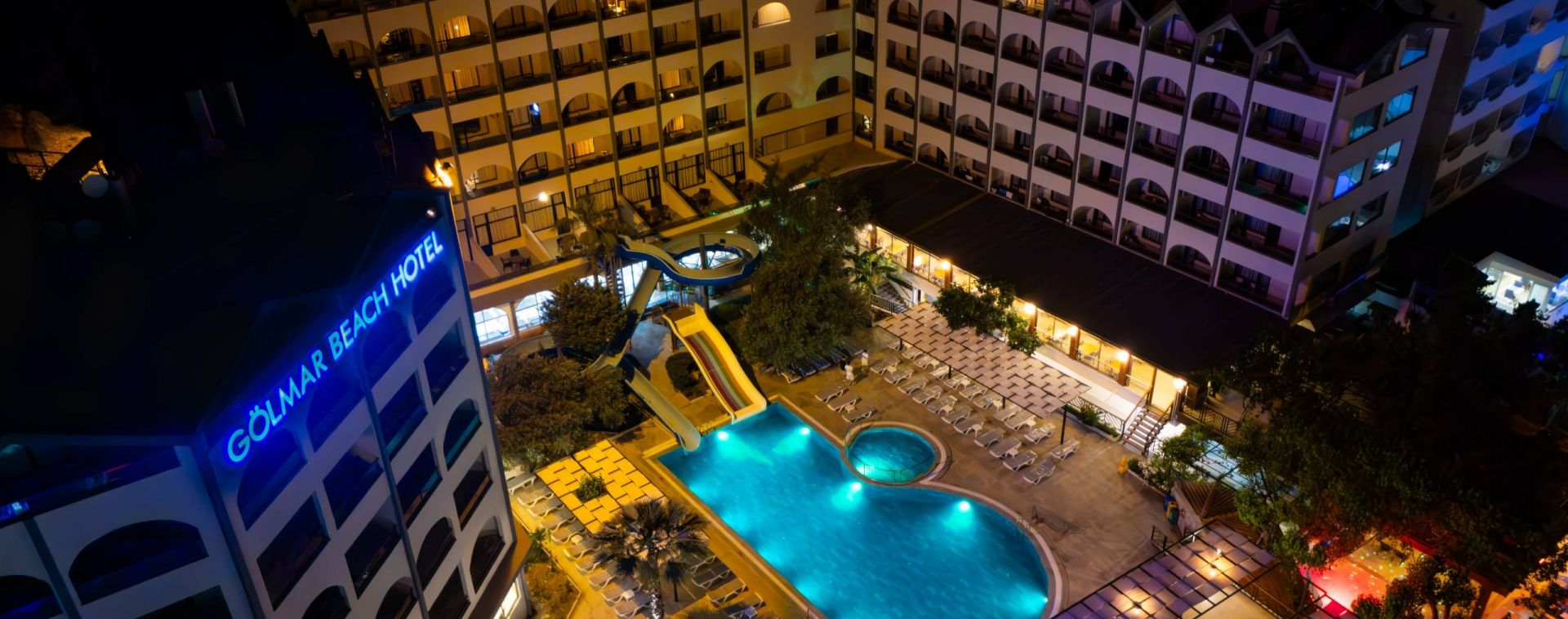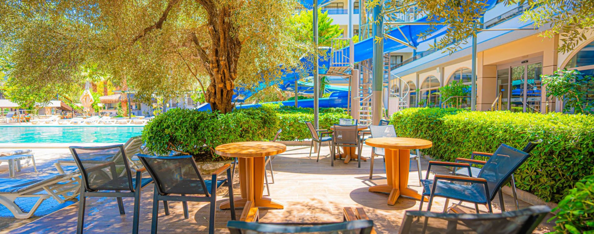 Основен ресторант, а - ла карт ресторант, снек бар, бар на плажа, открит басейн, 2 водни пързалки, Спа център.