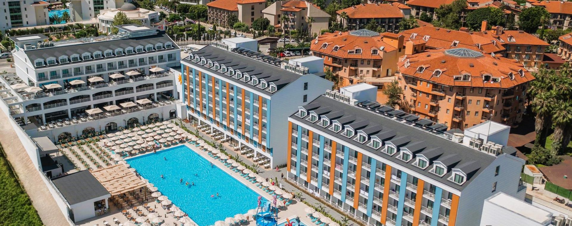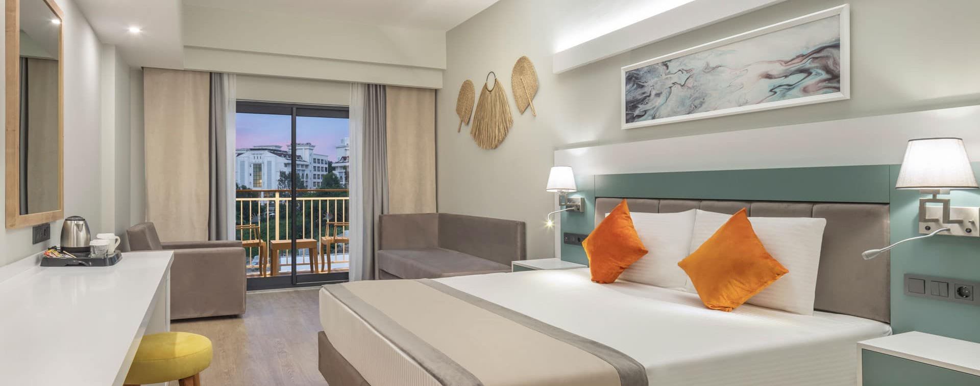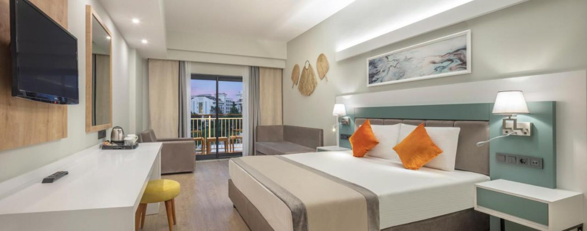 Основен ресторант, турски а-ла-карт ресторант, италиански а-ла-карт ресторант, лоби бар, бар при басейна, снек бар, бар на плажа, сладкарница, открит басейн с джакузи, аквапарк със 7 водни пързалки, закрит отопляем басейн, SPA център с турска баня и сауна, анимационна програма със спортни и развлекателни дейности, жива музика, тематични вечерни представления, безплатен безжичен интернет на територията на целия хотел.