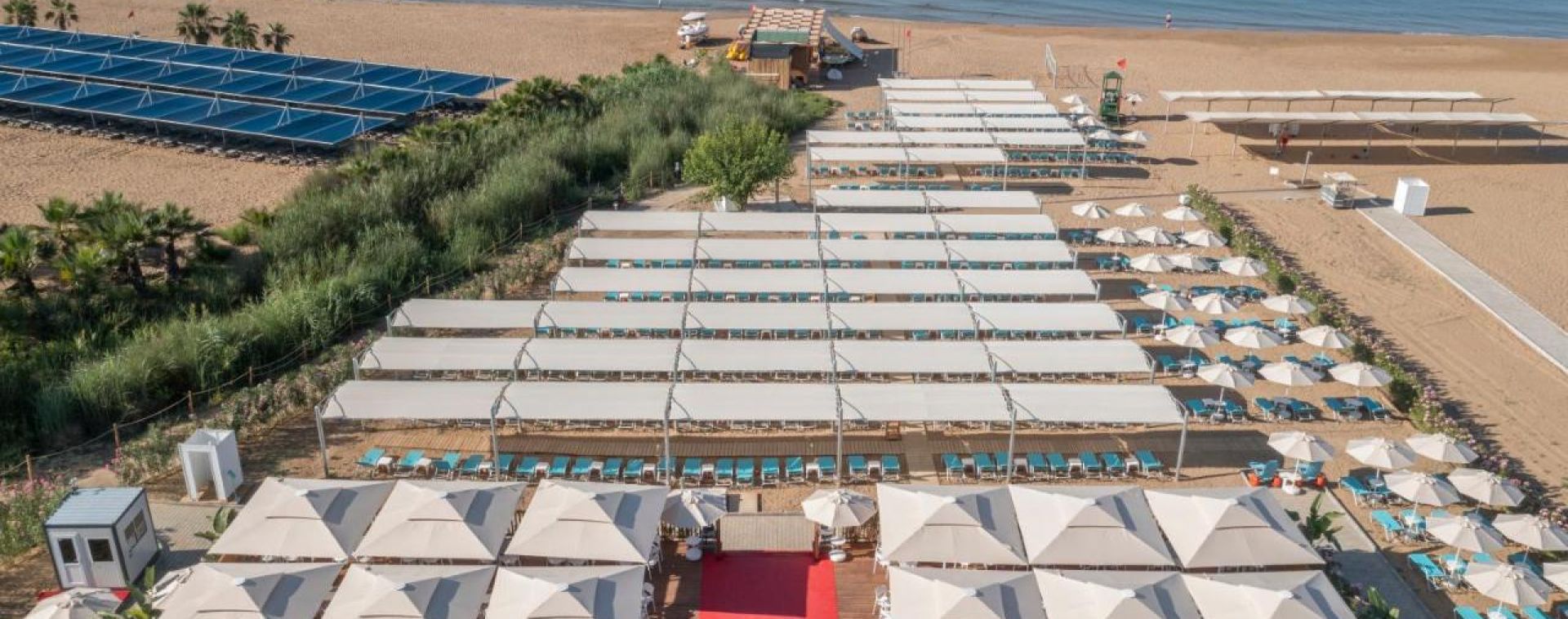 Собствена пясъчна плажна ивица с плавен преход на разстояние 400 метра от хотела. За удобство на гостите на хотела е предвиден безплатен шатъл бус до плажа. Безплатно ползване на чадъри и шезлонги на плажа и при басейна.