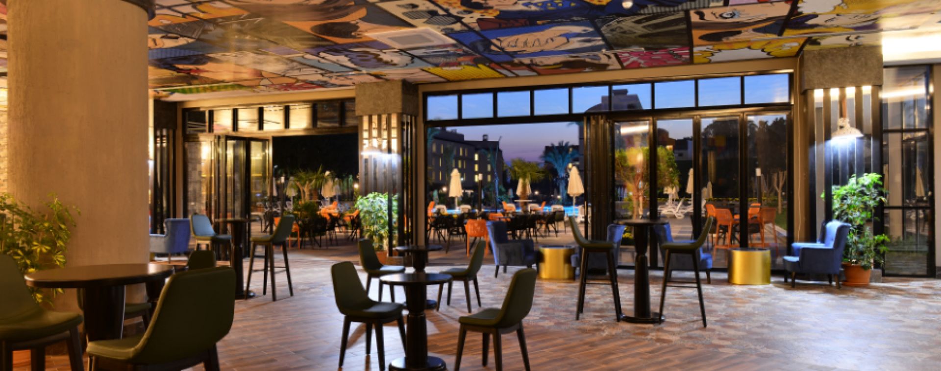 Основен ресторант, 3 а- ла - карт ресторанта (турски, азиатски, италиански - с предварителна резервация, веднъж безплатно за 7 нощувки), 5 бара, 2 открити и един закрит басейн, дискотека, сладкарница, Безплатни услуги: Сауна, турска баня, парна баня, фитнес,аеробика, дартс, плажен волейбол, пинг понг, анимация. Платени услуги: Масаж, СПА център, фризьорски и козметичен салон, ютия, телефон, турско кафе, магазини, рент - а кар.
