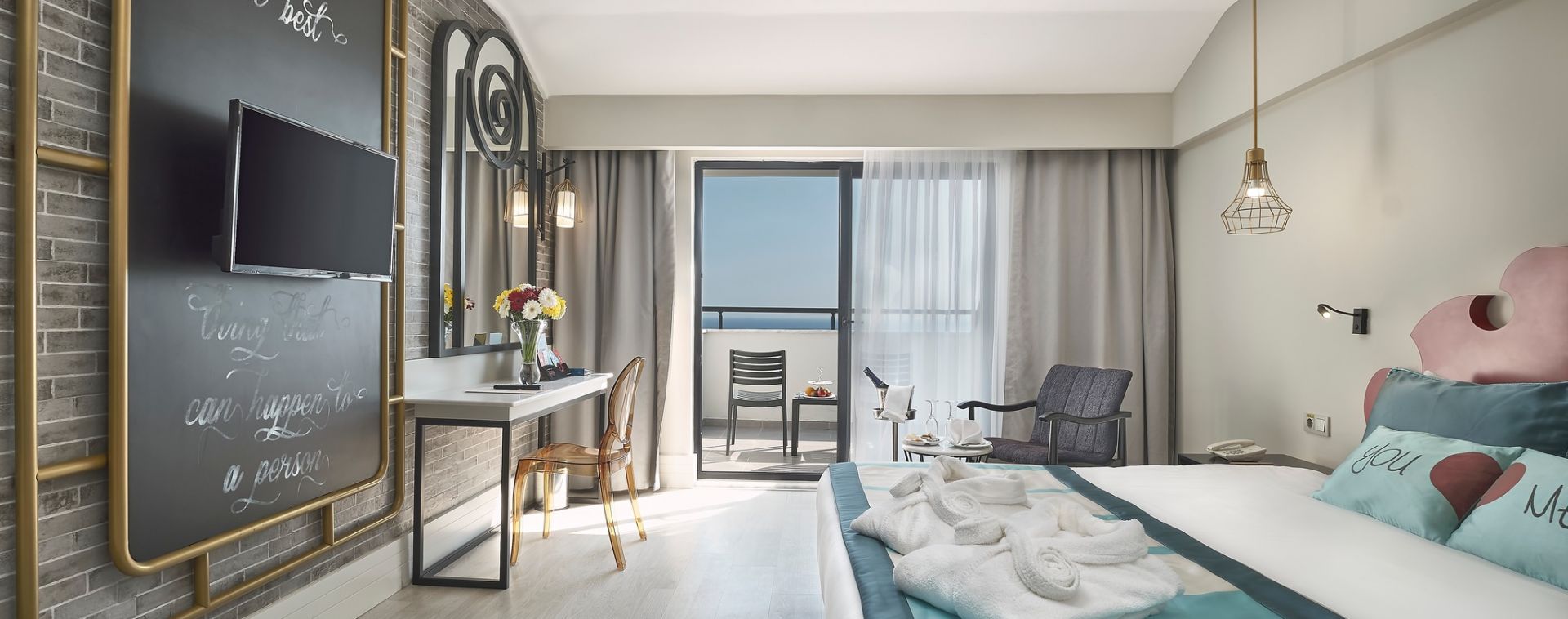 Хотелът разполага с общо 322 стаи, от които 119 стандартни стаи Standart room (изглед суша, изглед море, изглед басейн - 32 м.), 10 Swim up стаи (изглед басейн - 32 м.), 16 Suites (изглед море, изглед басейн - 42 м.). Всички стаи са оборудвани с климатик , телевизор, телефон, баня/душ, сешоар, минибар (минерална вода), сейф (срещу заплащане), сет за кафе/чай, балкон.