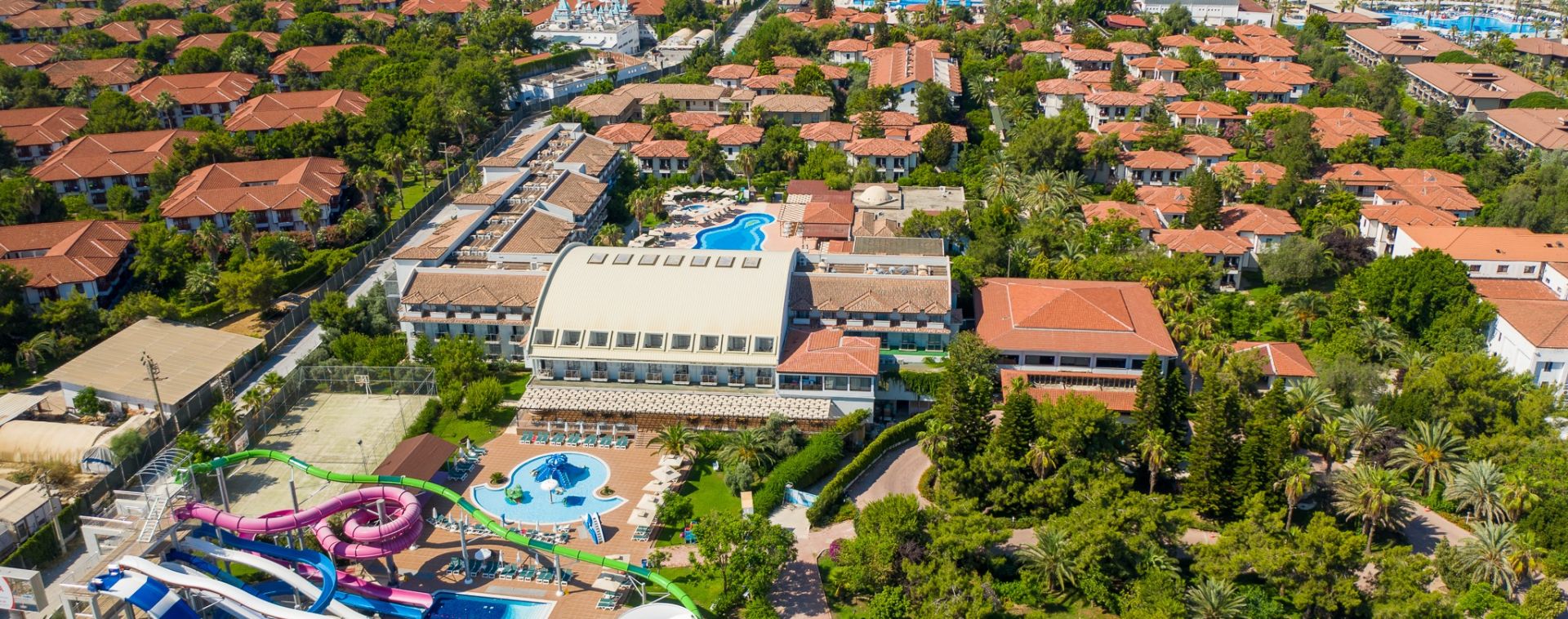 Хотелът се намира на 80 км от летище Анталия, на 80 км от центъра на Анталия, на 13км от град Манавгат, на 45км. от центъра на Алания, на 15км от Сиде. Построен е през 1997г. с обща площ от 98000м2 и е реновиран през 2012г.