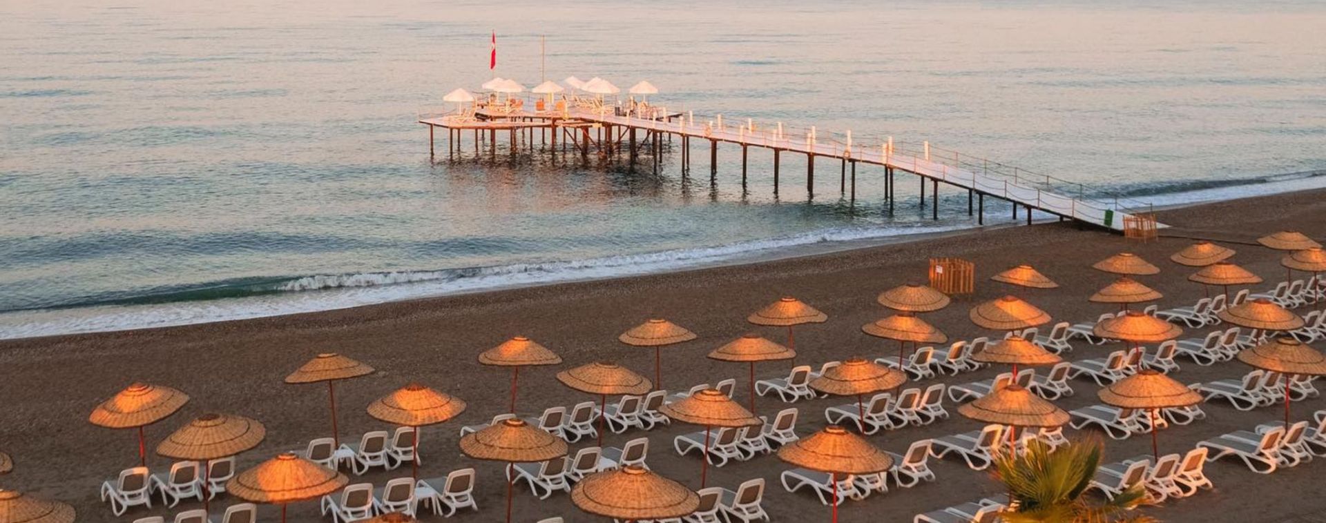Собствен, пясъчно-чакълест с дължина 340 м. Чадъри, шезлонги и матраци на плажа и при басейна - безплатно. Плажни кърпи – срещу депозит.