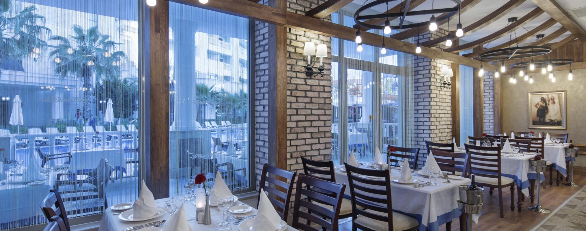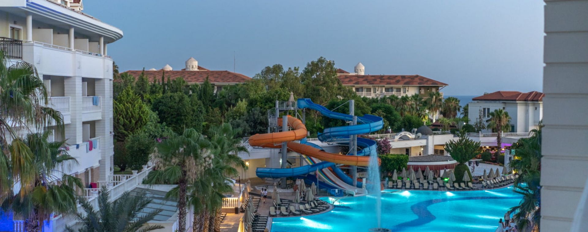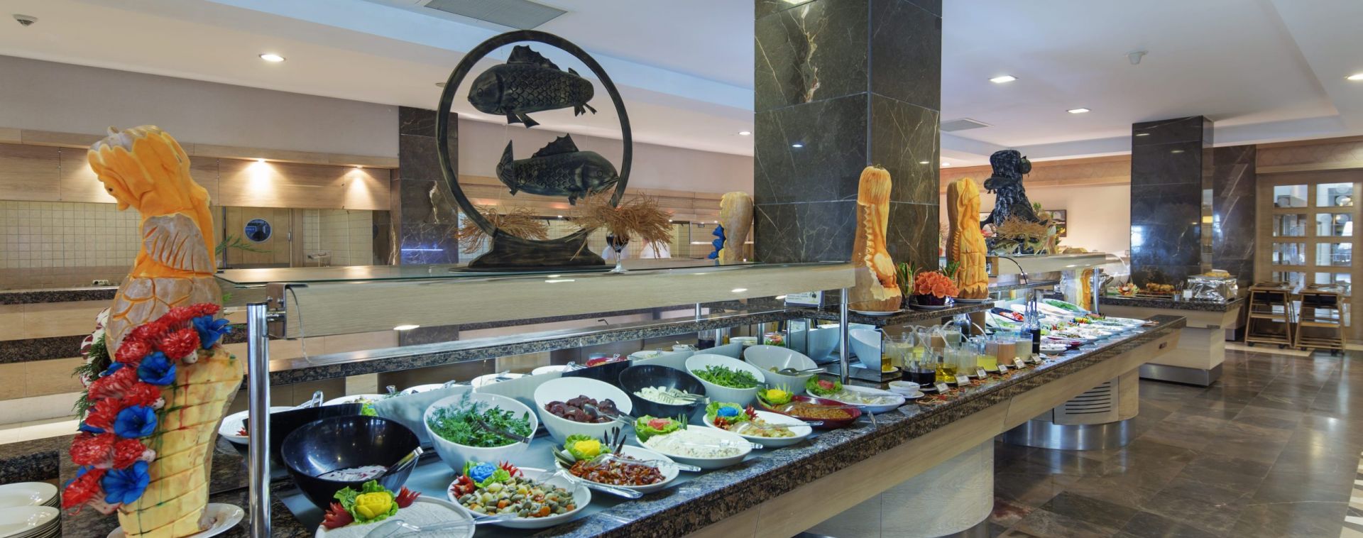 Основен ресторант, 2 а - ла - карт ресторанта, лоби бар, бар на плажа, диско бар, търговски център, доктор, тв салон, закрит басейн, открит басейна, детски басейн, 4 водни пързалки, интернет кафе. За децата: детски басейн, детска площадка, мини-клуб (4-12 год.),тийн клуб (13 - 17г.), детегледачка (платено). Безплатни услуги: турска баня, сауна, парна баня, джакузи, фитнес аеробика, аквааеробика, плажен волейбол, баскетбол, тенис на маса, тенис корт, дартс, мини-голф, боча, баскетбол, анимационна програма, дискотека, интернет в лоби. Платени услуги: масаж, билярд, игрални автомати, уиндсърфинг (с лиценз), интернет кафе, водни спортове, СПА - център.