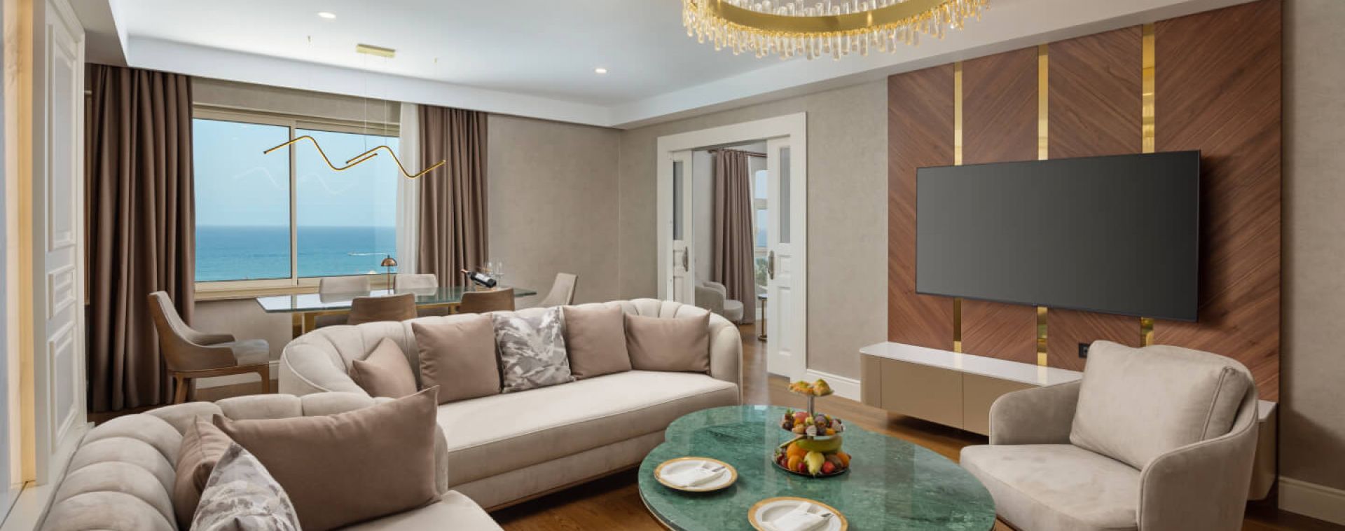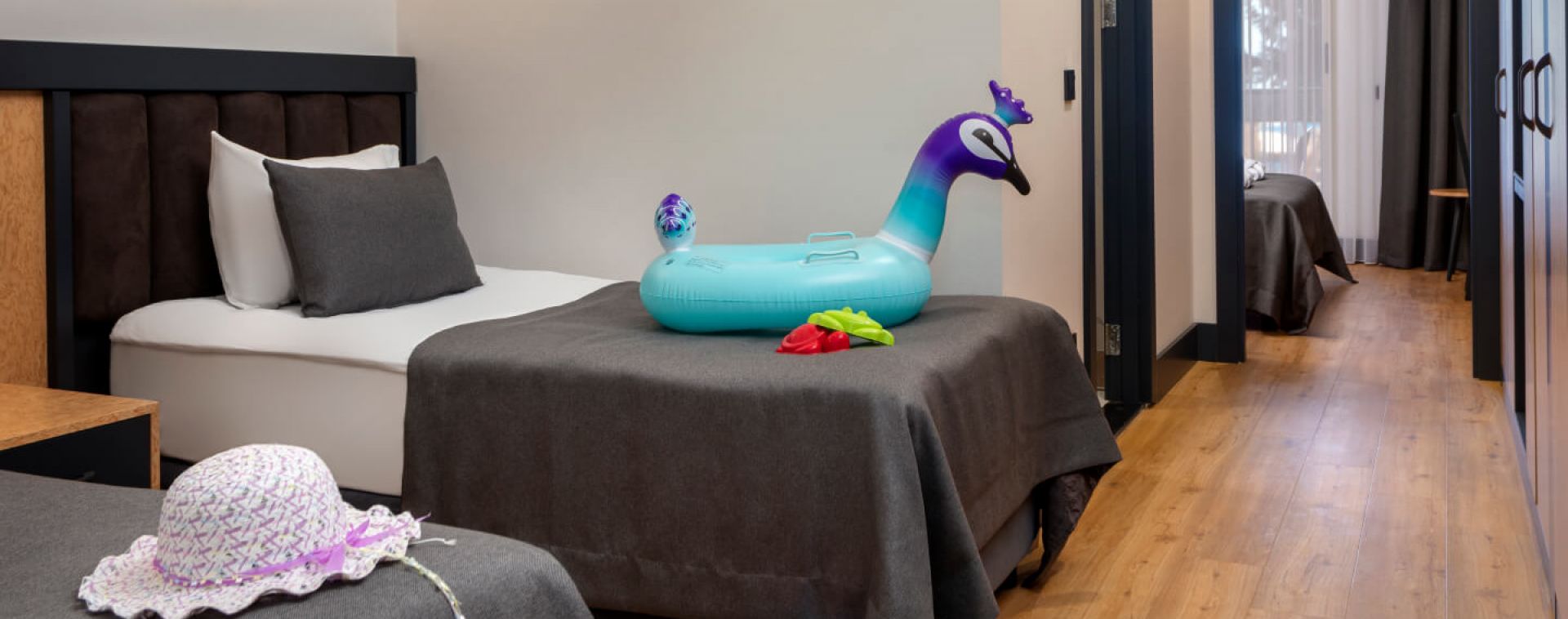 Хотелът разполага с общо 328 стаи, от които 262 стандартни стаи, 64 фамилни стаи и 2 кралски апартамента. Всички стаи са оборудвани с: централен климатик, сателитна телевизия, телефон, безжичен интернет, баня с вана, сешоар, мини бар – зарежда се ежедневно с вода, безалкохолни и бира, сейф, балкон. Почистване на стаите и смяна на кърпите – всеки ден, смяна на бельото – 3 пъти в седмицата.