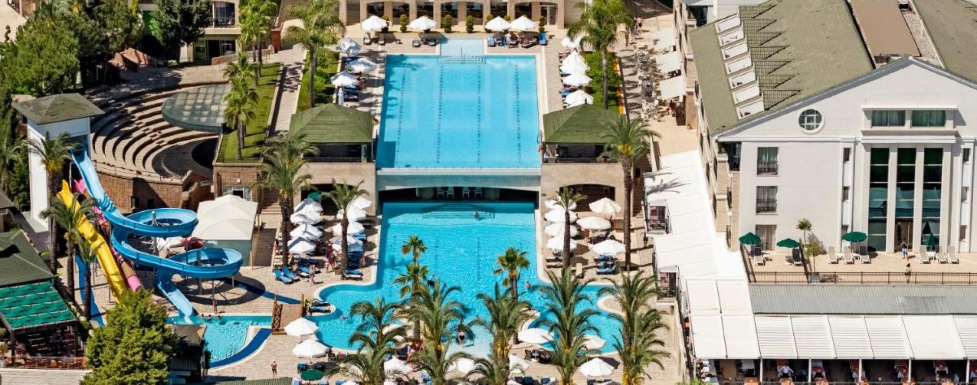 Хотелът се намира на 55 км. от летище Анталия, на 63 км. от центъра на Анталия, в района на гр.Сиде. Построен през 2004 г. с обща площ от 32 000 м2., последно реновиран през 2014 г.