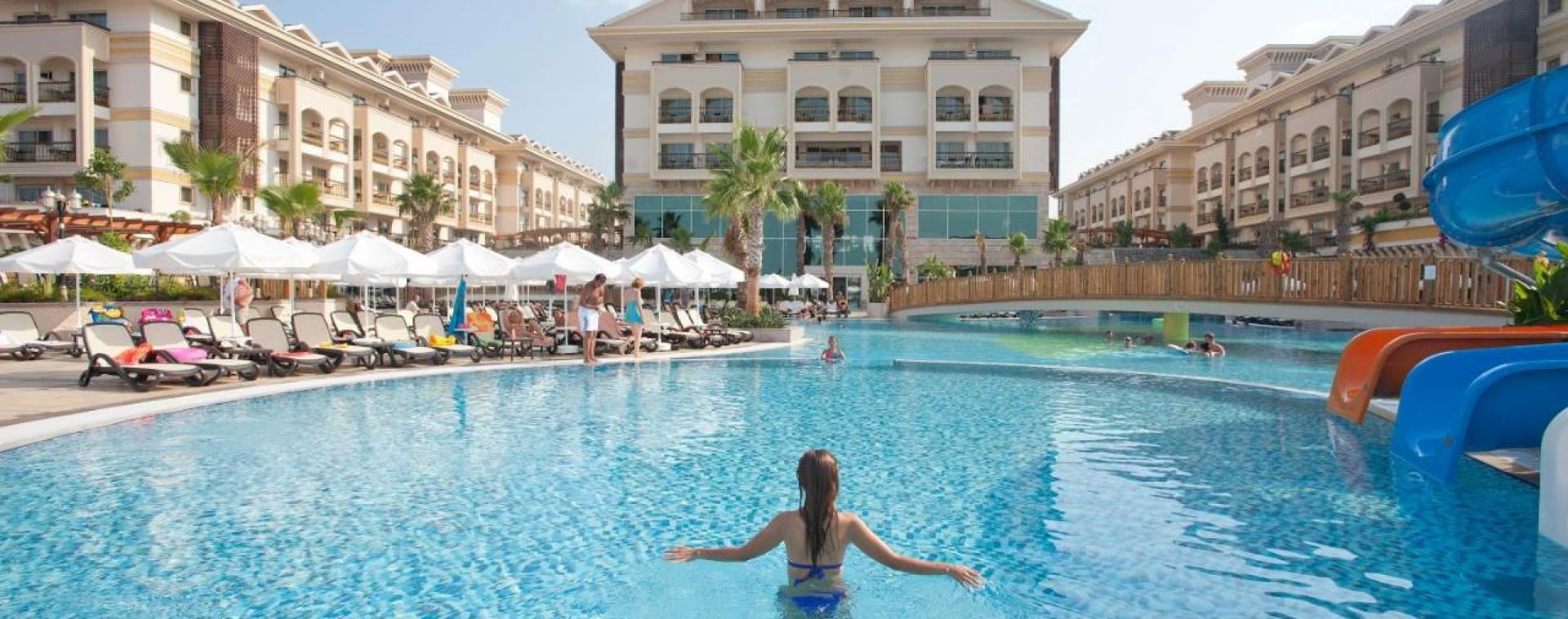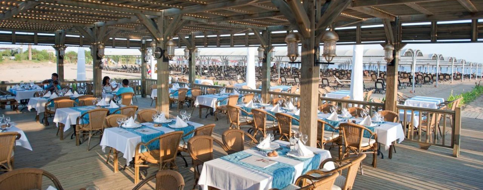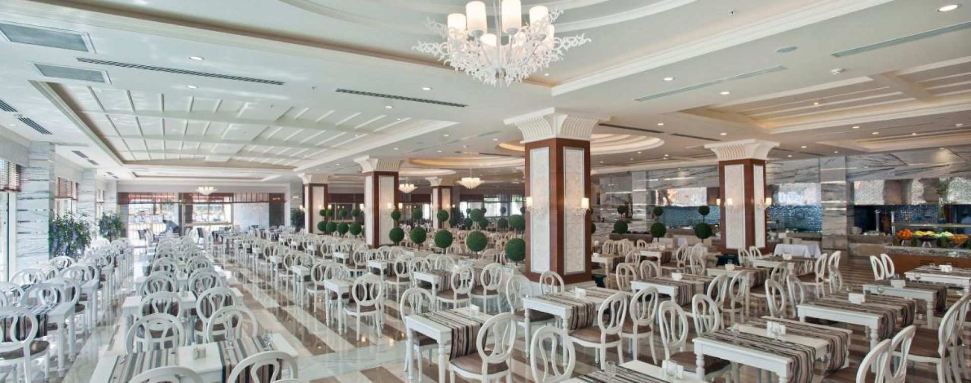 Основен ресторант с диетично и вегетарианско меню, 5 ресторанта a - лa - карт (италиански, турски, рибен, мексикански, китайски), 6 бара, открит басейн, закрит басейн, 3 водни пързалки, кинотеатър, лекарски кабинет, SPA - център, фризьор, магазини,2 конферентни зали. За децата: детско меню, детски басейн, аквапарк, детски мини клуб(4-12г.), младежки клуб(13-16г.) Безплатни услуги: турска баня, сауна, вътрешен басейн, тенис на корт, тенис на маса, дартс, мини голф, баскетбол, фитнес зала, Интернет. Платени услуги: масаж, билярд, боулинг, кан, водни спортове, фризьор, СПА - център.