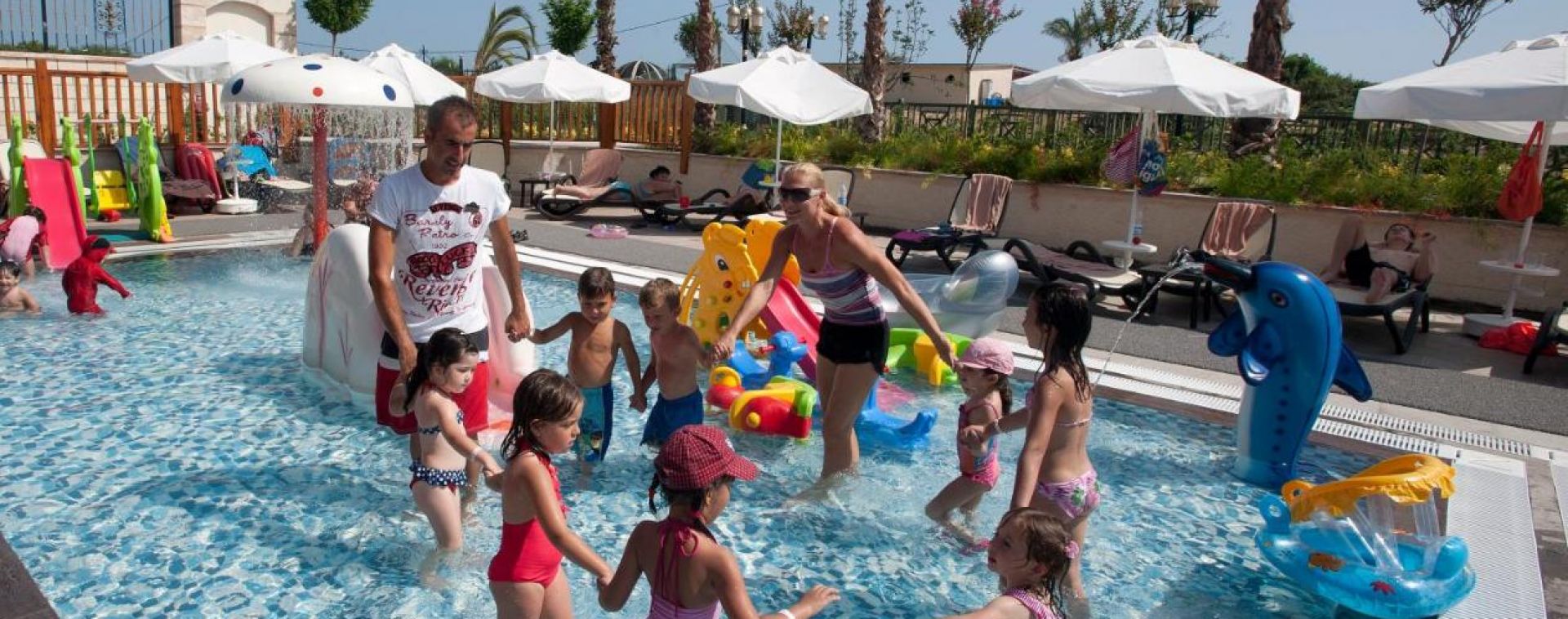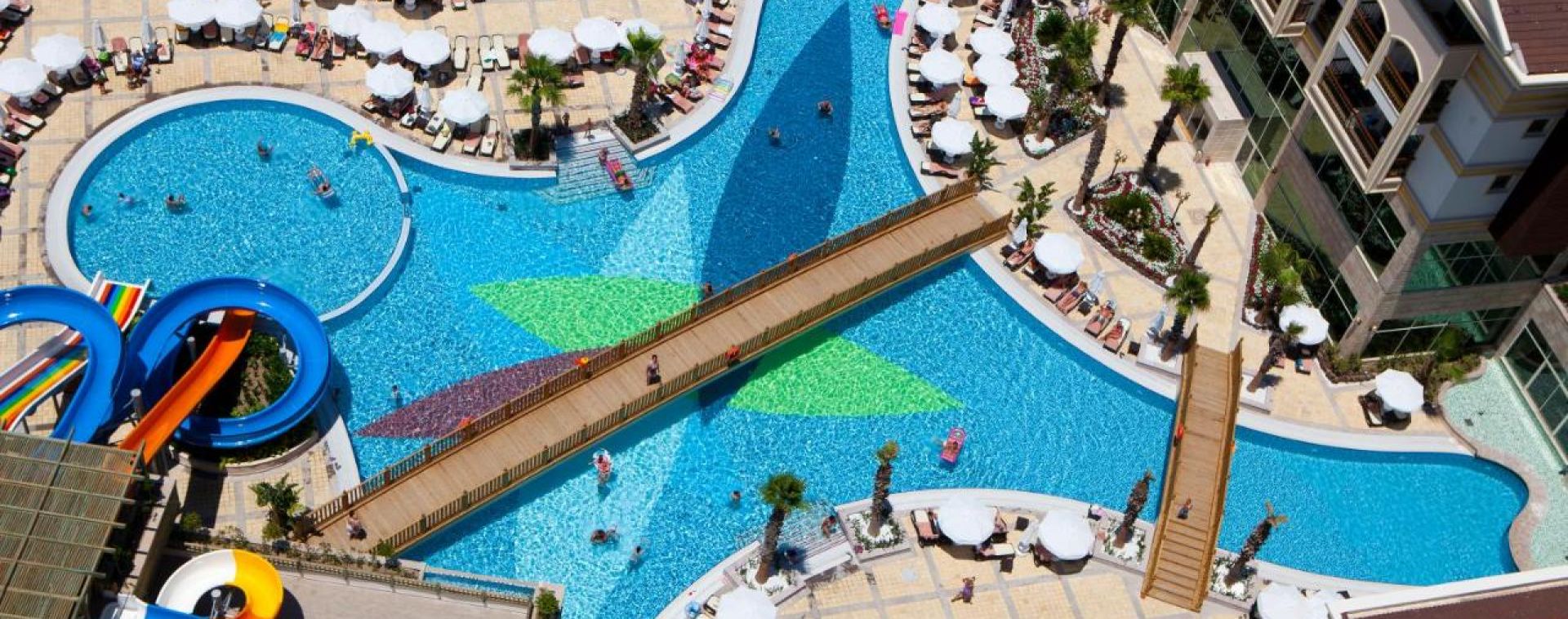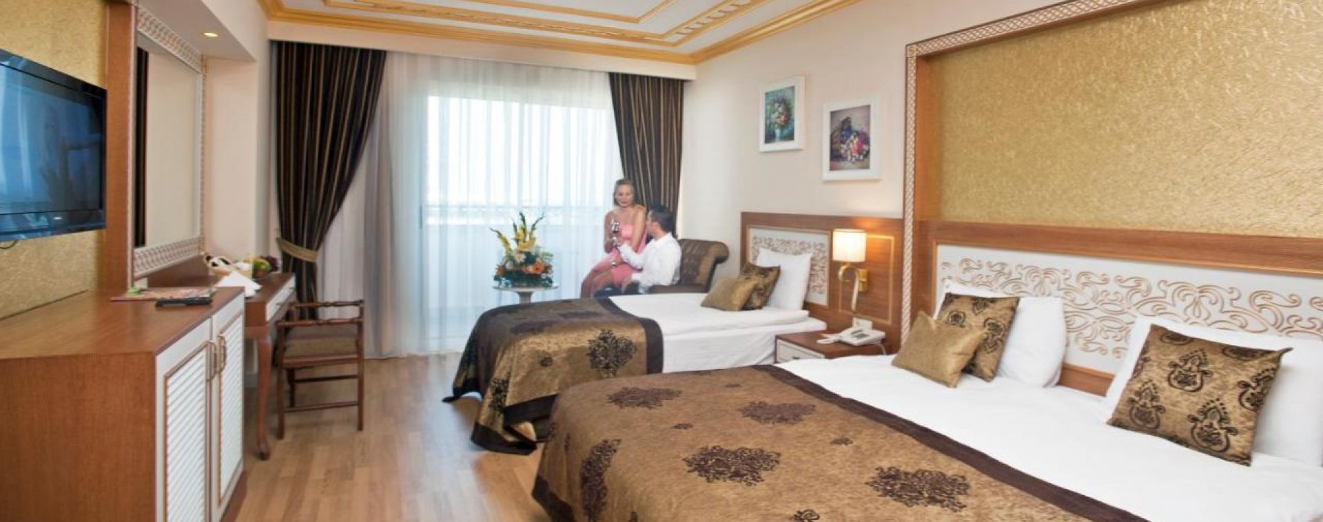Основен ресторант с диетично и вегетарианско меню, 5 ресторанта a - лa - карт (италиански, турски, рибен, мексикански, китайски), 6 бара, открит басейн, закрит басейн, 3 водни пързалки, кинотеатър, лекарски кабинет, SPA - център, фризьор, магазини,2 конферентни зали. За децата: детско меню, детски басейн, аквапарк, детски мини клуб(4-12г.), младежки клуб(13-16г.) Безплатни услуги: турска баня, сауна, вътрешен басейн, тенис на корт, тенис на маса, дартс, мини голф, баскетбол, фитнес зала, Интернет. Платени услуги: масаж, билярд, боулинг, кан, водни спортове, фризьор, СПА - център.