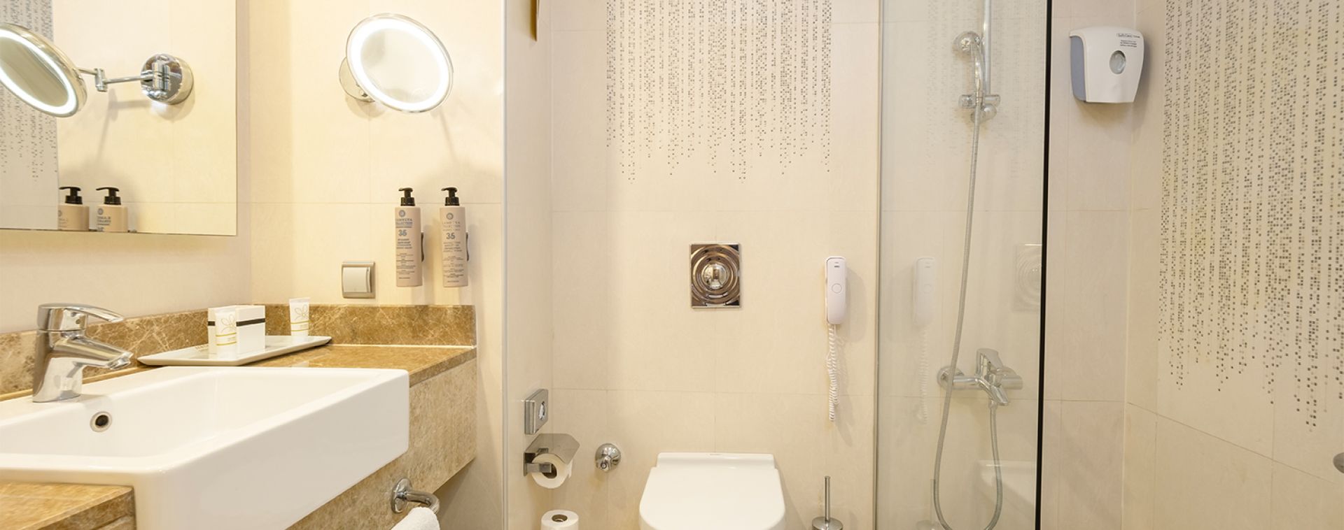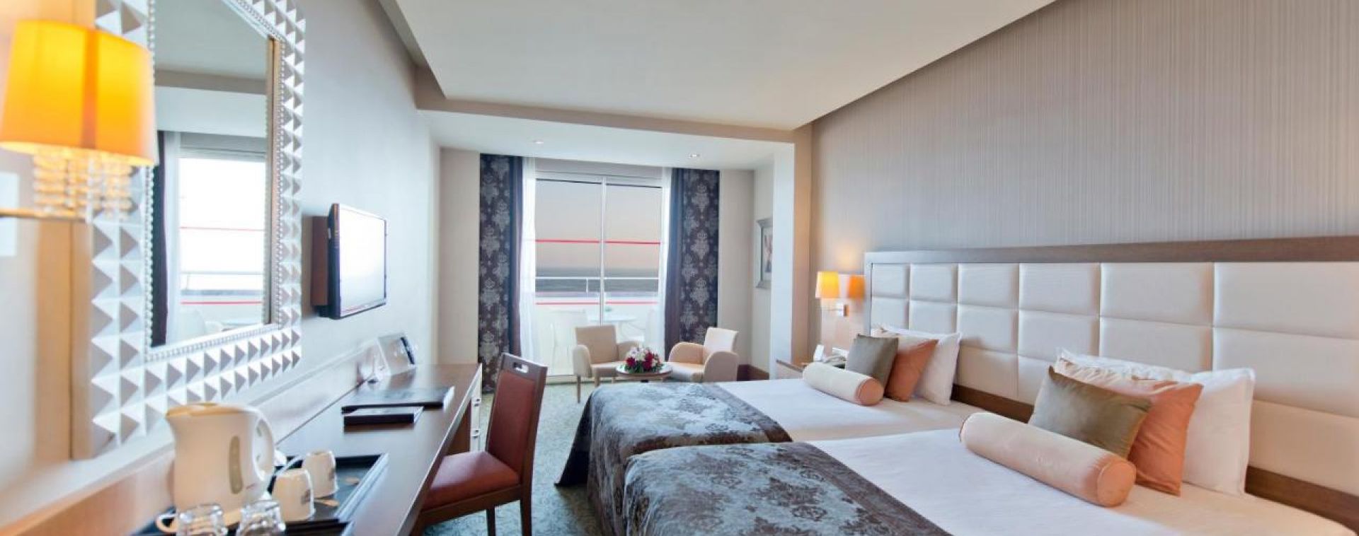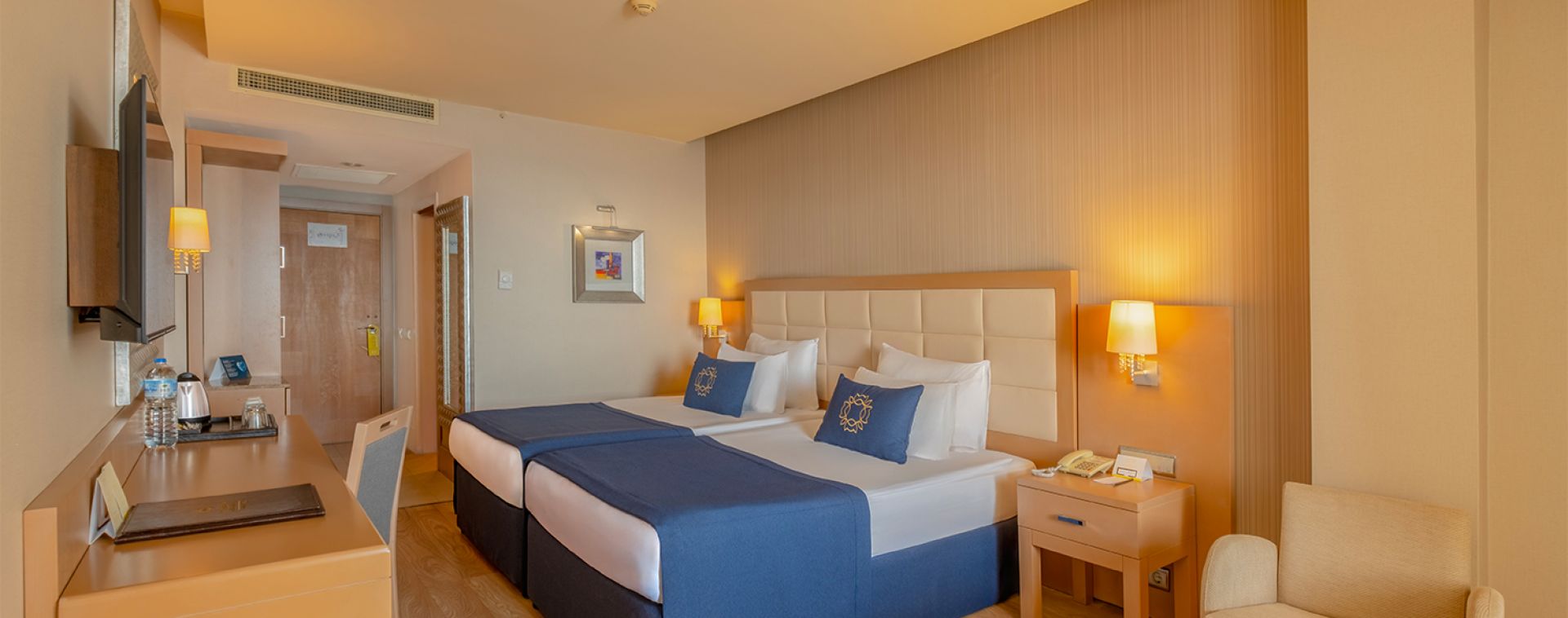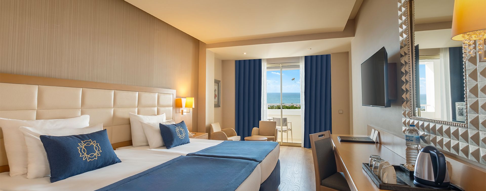 Състои се от 6-етажна основна сграда, отделен корпус Beach House и четири отделни 4-етажни корпуса Terrace House, разположени в близост до релакс-басейна (Terrace сградите са без асансьор). Всички стаи са оборудвани с вана,сешоар, индивидуален климатик, телевизор, телефон, мини-бар (безалкохолни напитки и бира се зареждат ежедневно), безплатно, сейф (безплатно), подова настилка – теракот, балкон, ежедневно почистване на стаята, смяна на спалното бельо – 2 пъти седмично
