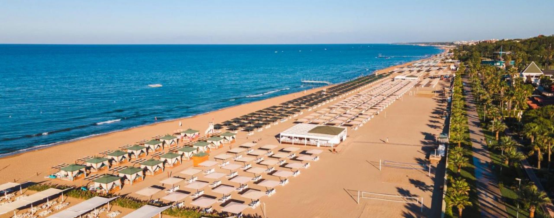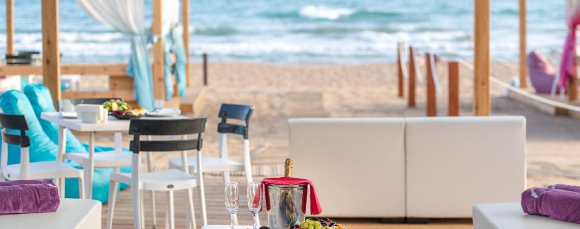 Собствен пясъчен плаж, 2 бара на плажа (единия е винен бар, работи от 03.05 до 31.10) безплатно. На басейна и на плажа: чадъри, шезлонги, матраци – безплатно. Плажни кърпи – безплатно.