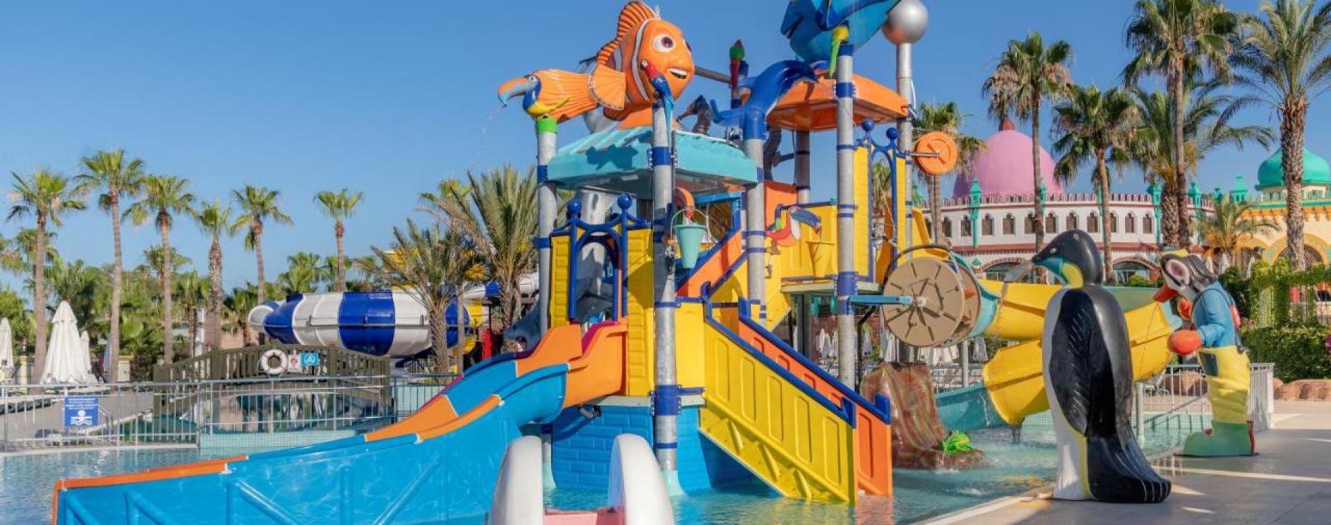 Oсновен ресторант, 5 a la carte ресторанта (китайски, рибен, италиански, турски, мексикански – с предварителна резервация, срещу заплащане), 7 бара, 3 открити басейна, закрит басейн, релакс басейн, аквапарк (6 водни пързалки), кино (в хотел Fulya), лекарски кабинет, СПА център (в хотел Fulya; платено), фризьорски салон, търговска алея, пералня (платено), химическо чистене (платено), 3 футболни игрища (65х100, 48х90, 70х95) Безплатно: турска баня (в хотел Fulya), сауна, парна баня (в хотел Fulya), джакузи, фитнес, аеробика, аквааеробика, плажен волейбол, баскетбол, 5 тенис корта с кварцово покритие, тенис на маса, дартс, стрелба с лък, мини-голф, безмоторни водни спортове, уиндсърфинг (с лиценз, 1 час), анимационна програма, музика на живо, дискотека, безжичен интернет (в лоби). Платени: масаж, боулинг, билярд, игрални автомати, осветление на тенис кортовете, наем на тенис ракети и топки, уроци по тенис, моторни водни спортове, катамаран (с лиценз), интернет кафе (в хотел Fulya), безжичен интернет.