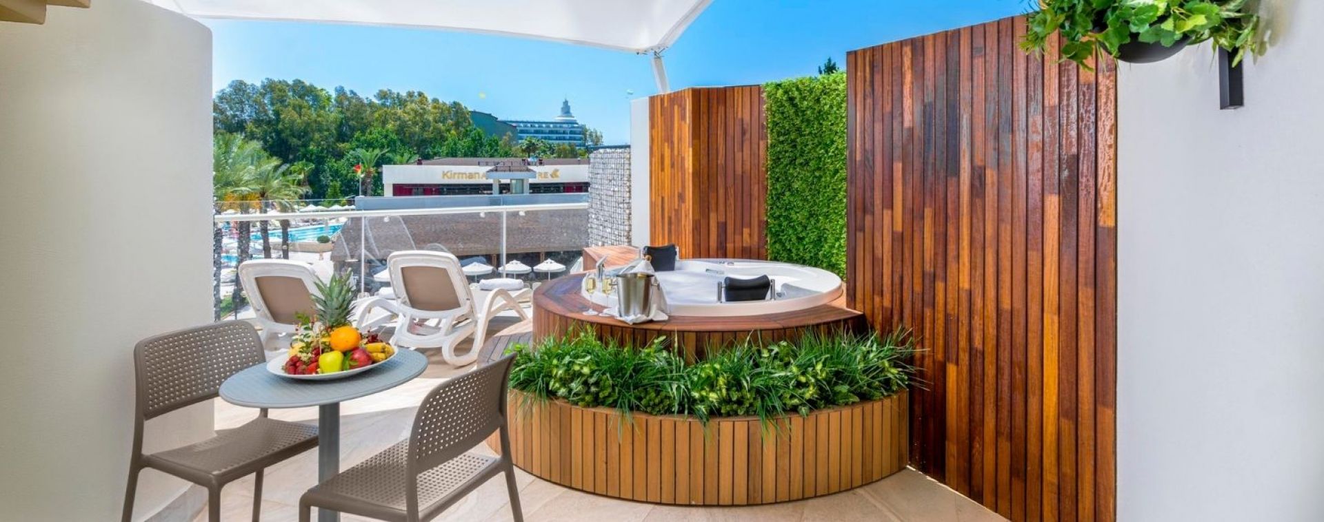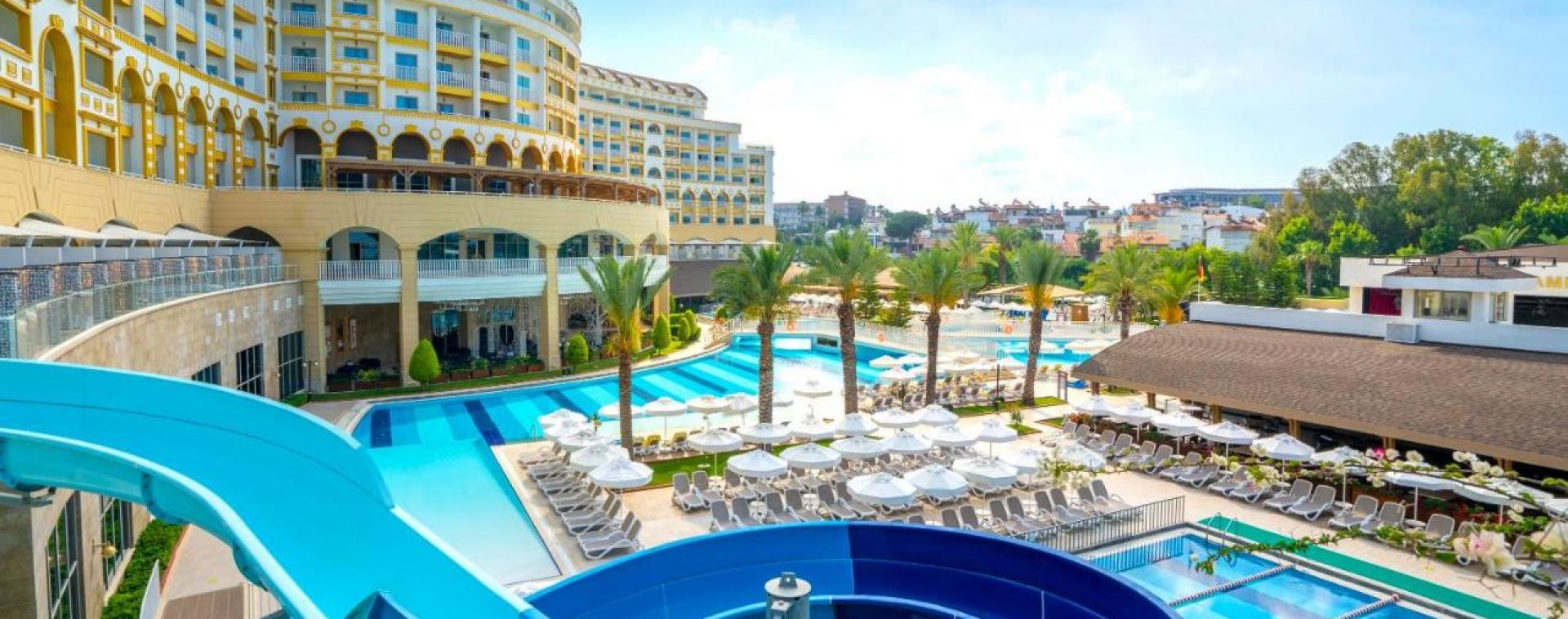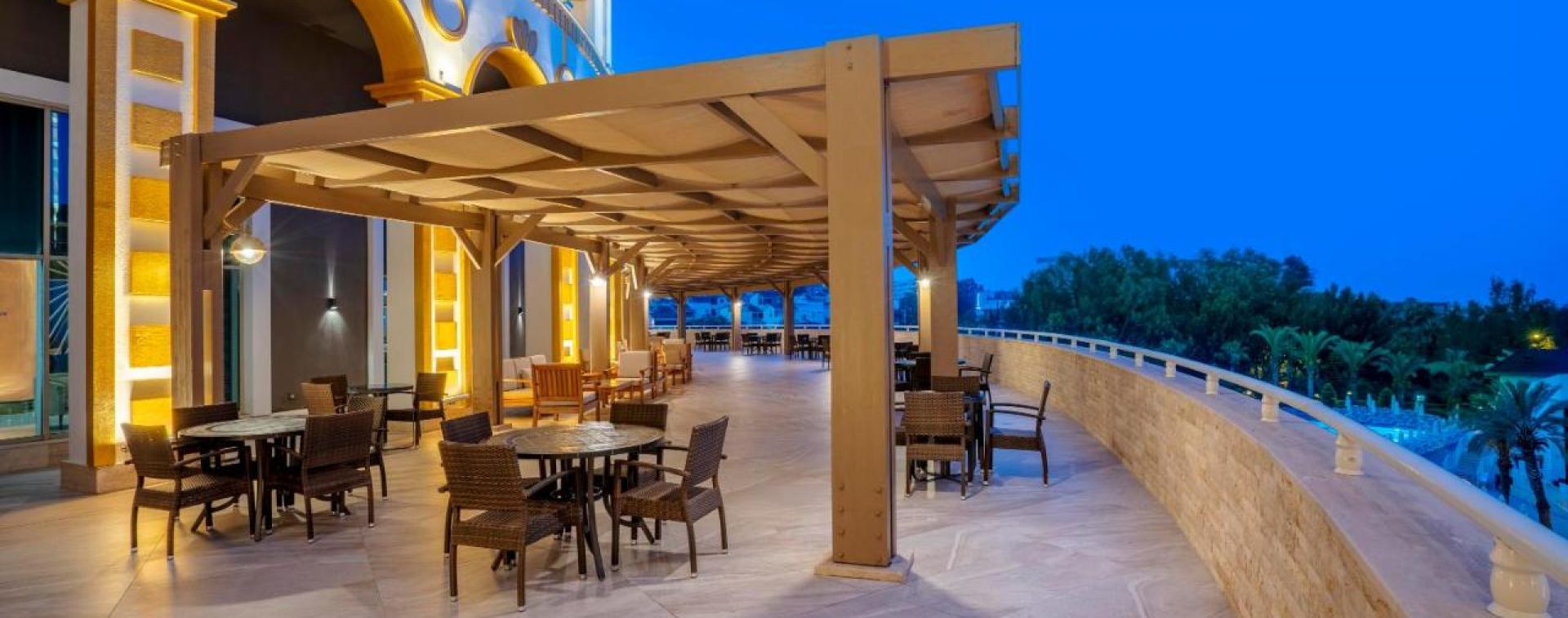 Оснорен ресторант, а ла карт ресторанти (средиземноморски, турски, суши, стек), 7 бара, дискотека, външен басейн, басейн с 3 пързалки, полу-олимпийски басейн, вътрешен басейн, анимация и различни спортни занимания, 2 конферентни зали. Безплатни услуги: турска баня, сауна, фитнес, водно поло, водна гимнастика,боча, дартс, тенис на маса, тенис на корт, плажен волейбол, баскетбол, мини футбол. Платени услуги: масажи, Аюрведа, различни терапии за лице и тяло, фризьорски салон, лекар, химическо чистене, коли под наем, водни спортове, За децата: детски басейни външен и вътрешен, мини клуб, мини диско, детска площадка,