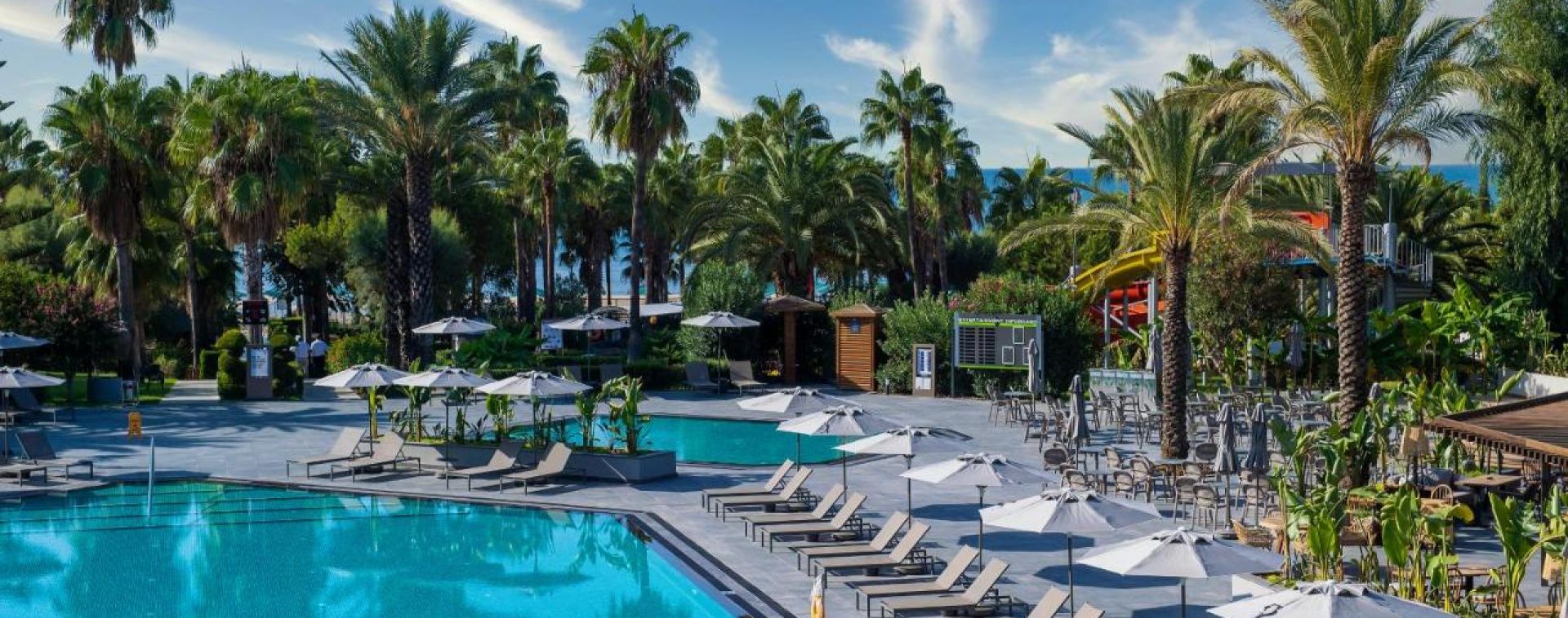 Основен ресторант, 2 а-ла-карт ресторанта (италиански, средиземноморски – 1 безплатно посещение на 1 от ресторантите при минимум 7 нощувки), сладкарница, 11 бара, открит и закрит басейн (отопляеми през зимния период), водни пързалки, дискотека, амфитеатър, СПА център, магазини, паркинг.