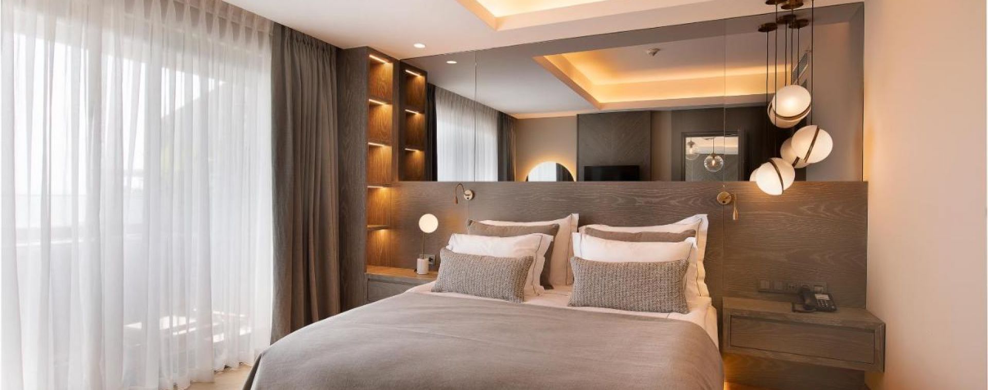Стаи Main Building: Superior room land view (изглед суша – 30 м2), Superior Room Side Sea View (страничен изглед море – 30 м2), Superior Sea View (изглед море - 30 м2), Superior Family room (2 спални, 1 баня, изглед суша – 42 м2), Superior Corner room (изглед суша – 35 м2), Deluxe Terrace and Jacuzzi room (джакузи, тераса с кът за сядане – 40 м2, изглед градина или море – 80 м2), Suite room (спалня с джакузи, всекидневна, балкон – 10 м2, изглед море – 70 м2).