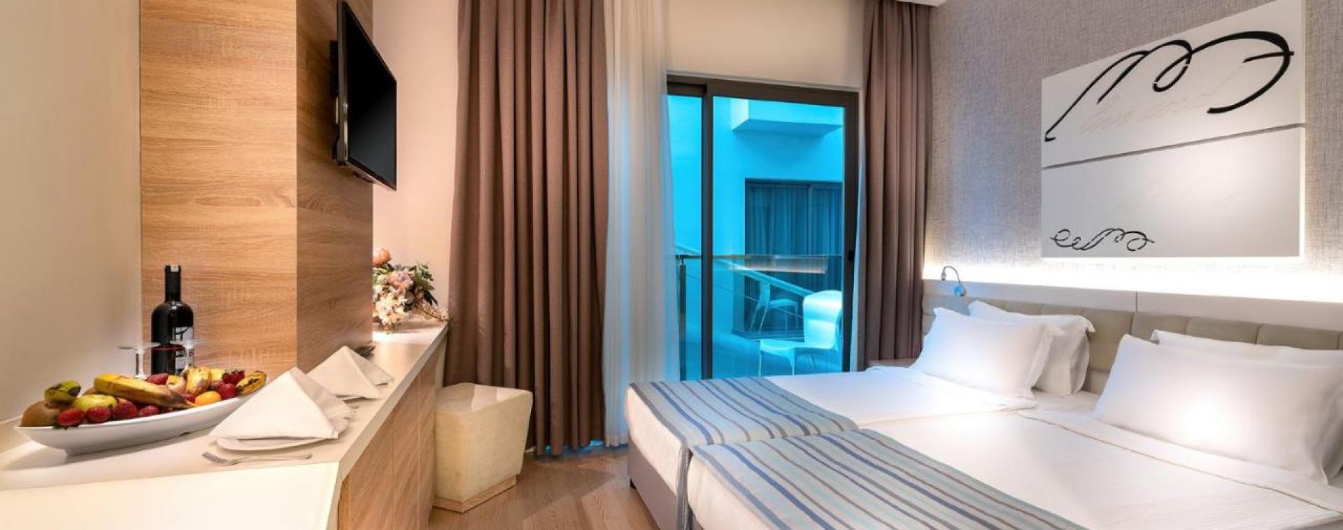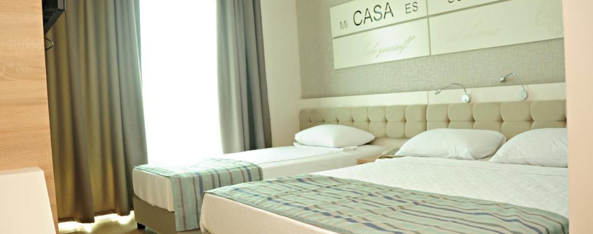 Хотелът разполага с общо 178 стаи, от които Standard rooms (23m2), Family room ( 43м2). Всички стаи са оборудвани с климатик, телевизор, телефон, баня с душ , сешоар, сет за кафе/чай, минибар (вода и безалкохолни напитки – безплатно), сейф (безплатен). Почистване на стаите и смяна на кърпите- всеки ден, смяна на спално бельо – 2 пъти в седмицата.