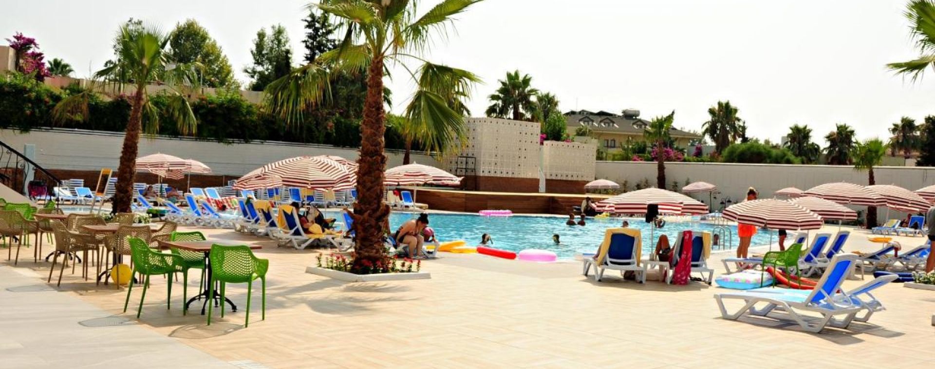 Основен ресторант, барове, открит и закрит басейн, 2 водни пързалки, СПА център, магазини, дискотека, WI-FI(в лоби). За децата: Детски басейн, мини клуб(4-12), детска площадк, мини диско. Безплатни услуги: Сауна, турска баня , парна баня, фитнес, тенис на маса, дартс, билярд, плажен волейбол, аеробика, водна гимнастика, анимация, WI-FI. Платени услуги: Масаж, пилинг, фризьор, химическо чистене, лекар, водни спортове, детегледачка , рент-а кар.