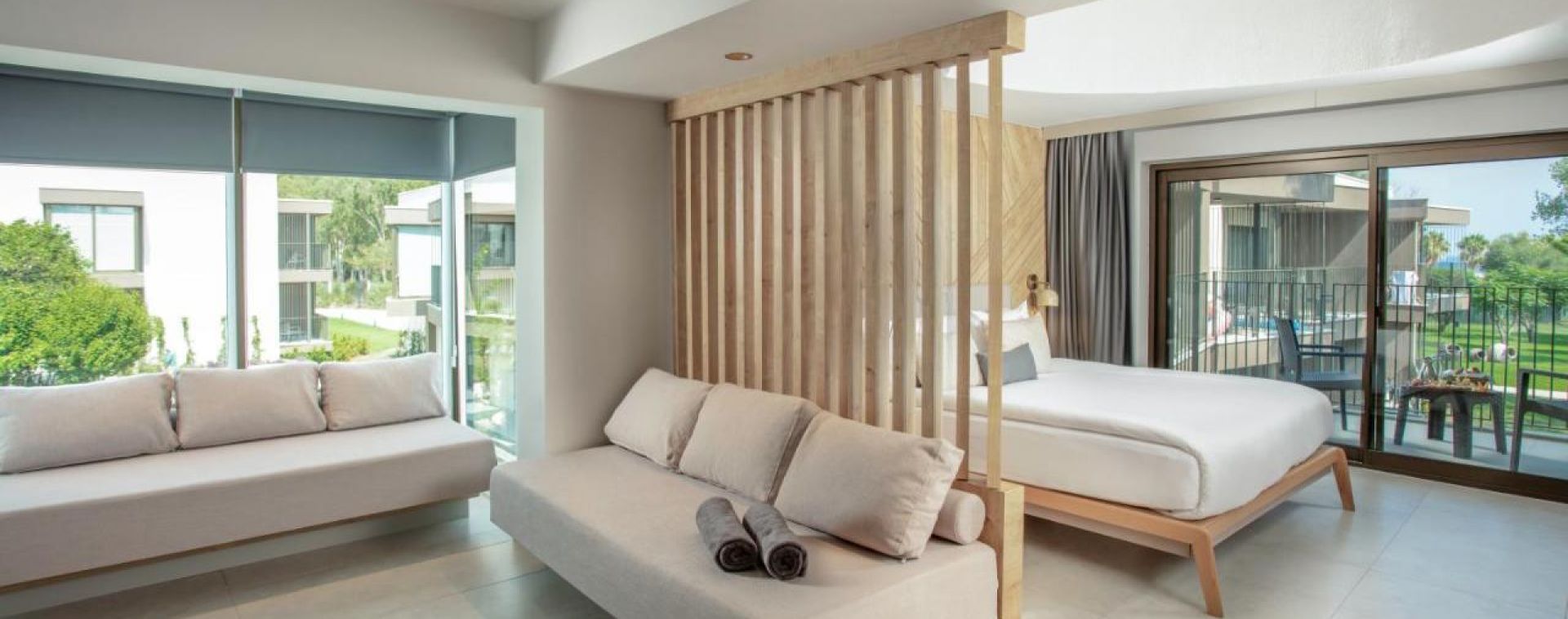 Хотелът разполага с общо 270 стаи, от които Standart (21 м²), Junior suite (37 м²), Family suite (40 м²), Family connection (2 спални, 2 бани, 42 м²). Всички стаи са оборудвани с климатик, телевизор, телефон, баня с душ/вана, сешоар, минибар (безплатен), сет за кафе/чай, сейф (безплатен), балкон. Почистване на стаите и смяна на кърпите - всеки ден, смяна на спалното бельо – 3 пъти седмично.