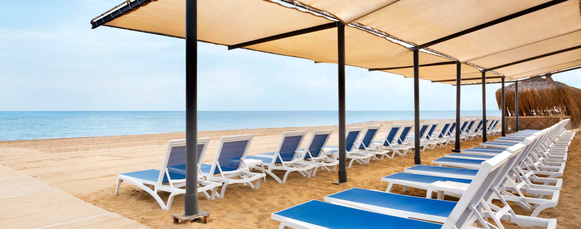 Собствен плаж, на 600 метра от хотела. Има безплатен шатъл до плажа. Шезлонги и чадъри при плажа и на басейна- безплатно. Снек бар на плажа.