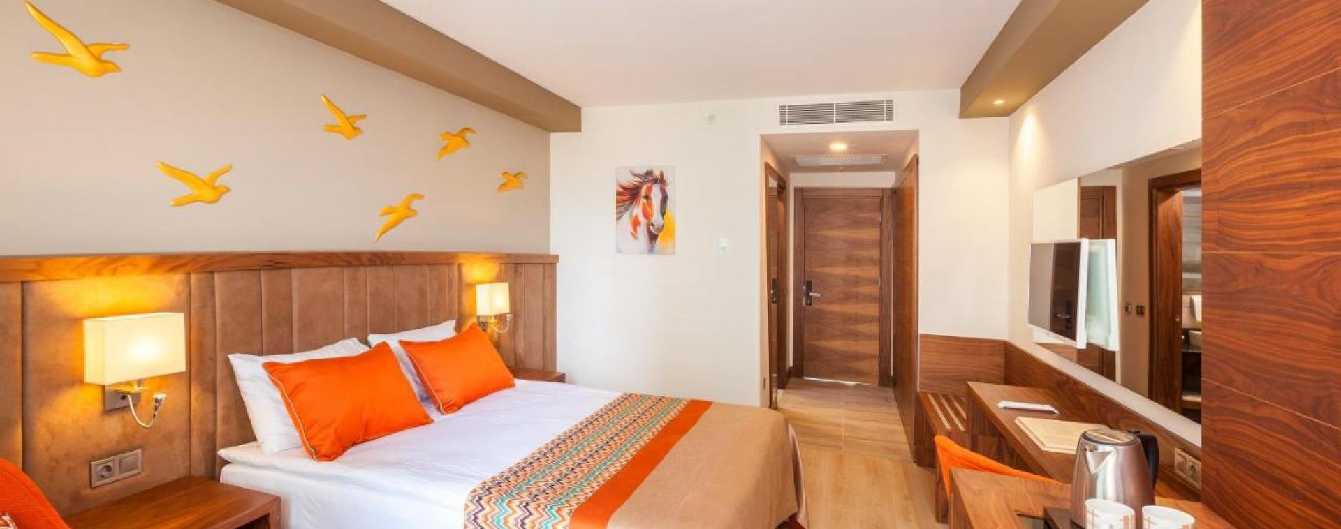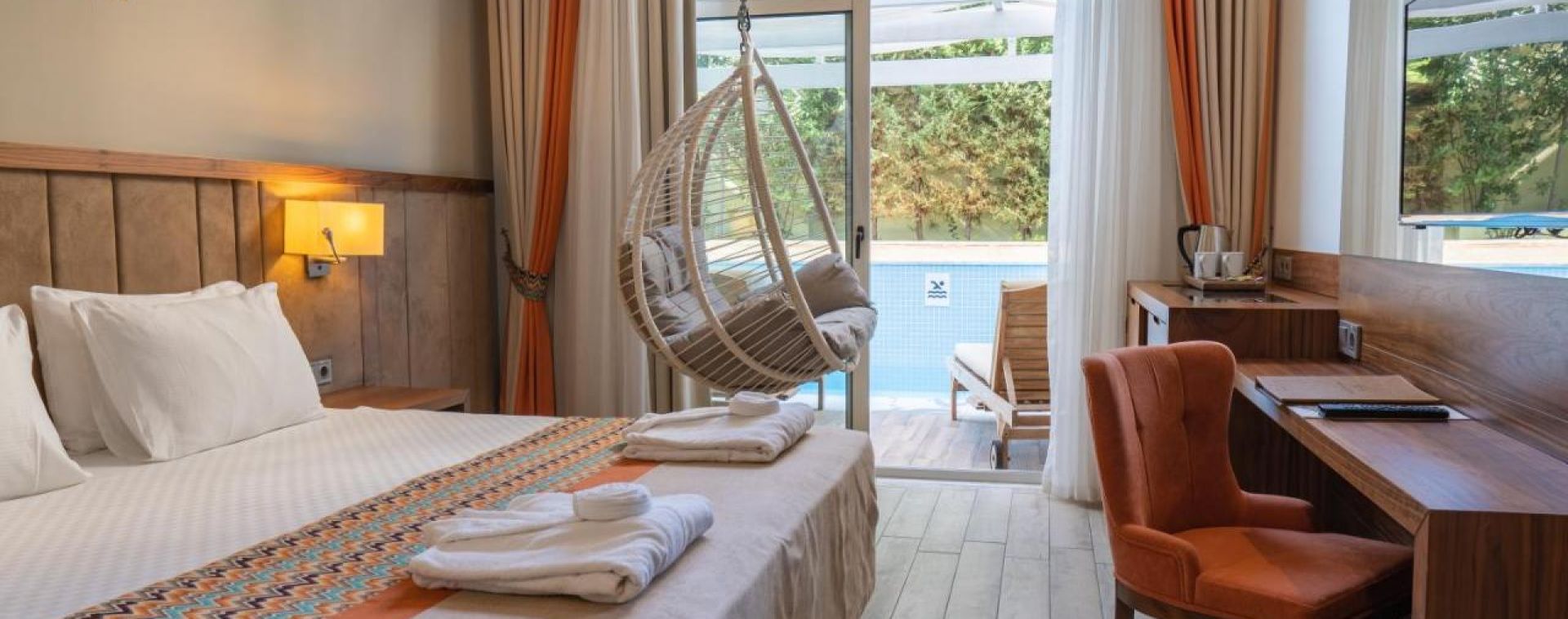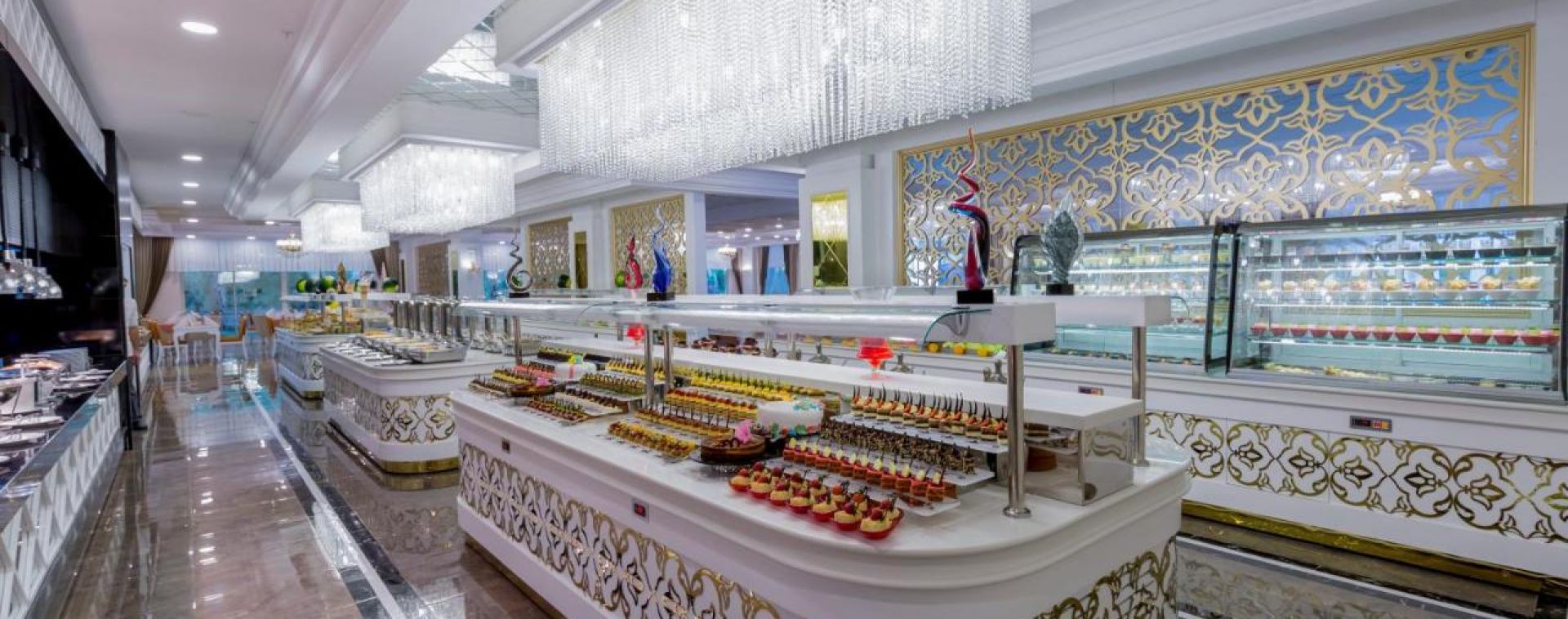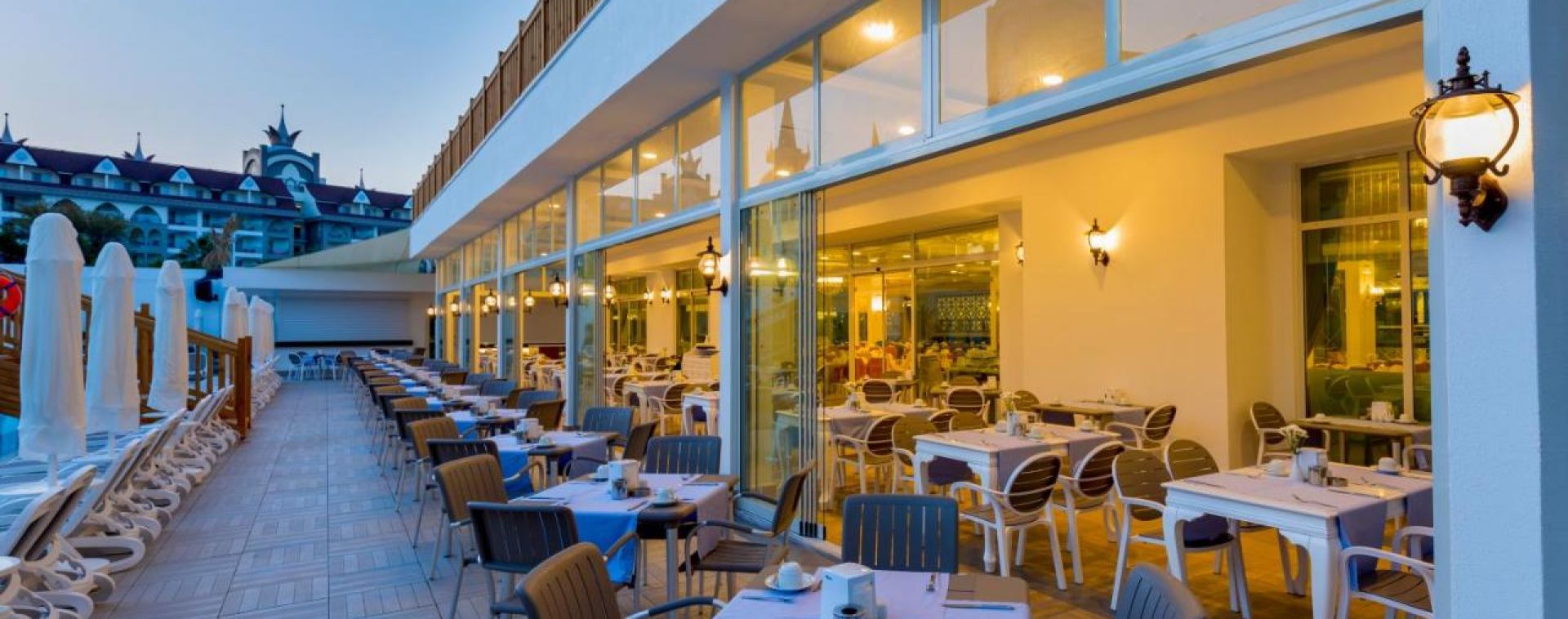 Основен ресторант, 2 а-ла-карт ресторанта (рибен, турски, международна кухня - с предварителна резервация), 4 бара, открит закрит басейн, 3 водни пързалки, СПА център, конферентна зала.