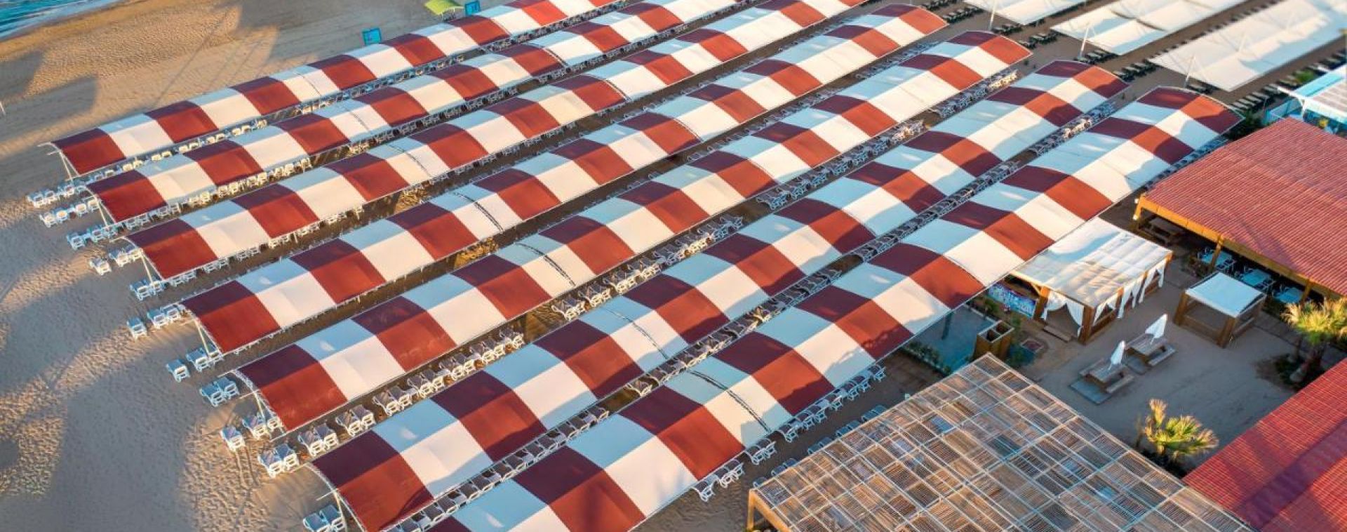 Собствен на 250м. от хотела, пясъчен. Чадъри, шезлонги и матраци на плажа и при басейна - безплатно.